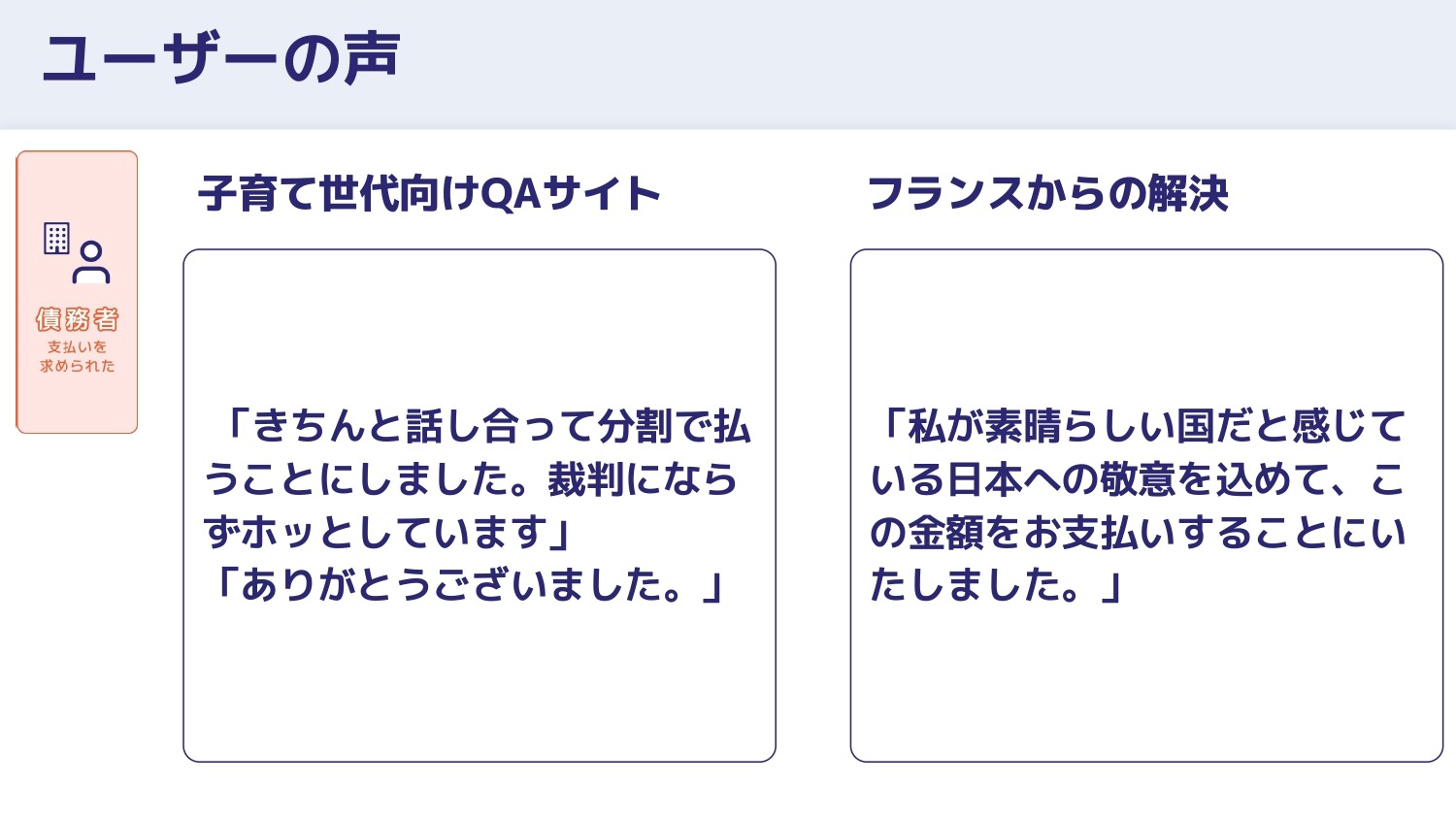 こちらは、債務者ユーザーの声です。