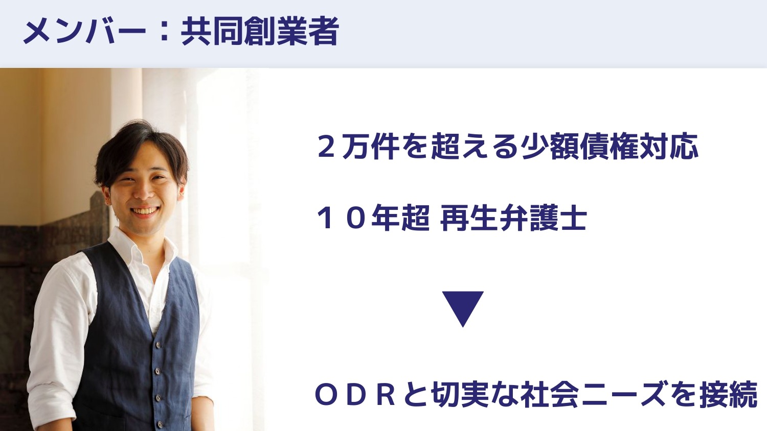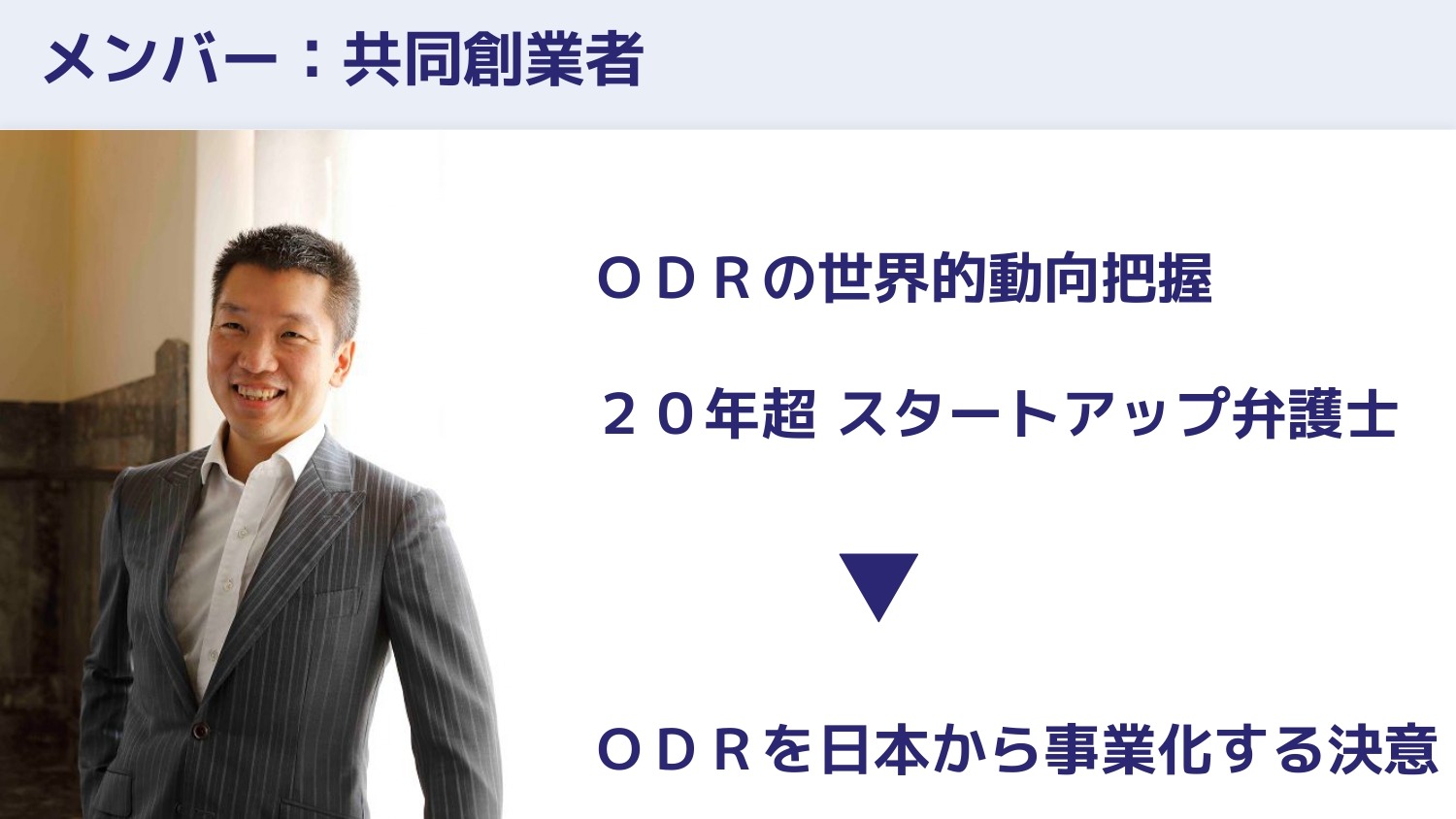 共同創業者の森(理俊さん)は20年のスタートアップ支援の経験を持つ弁護士で、ODRを日本から事業化していくという旗を立てました。