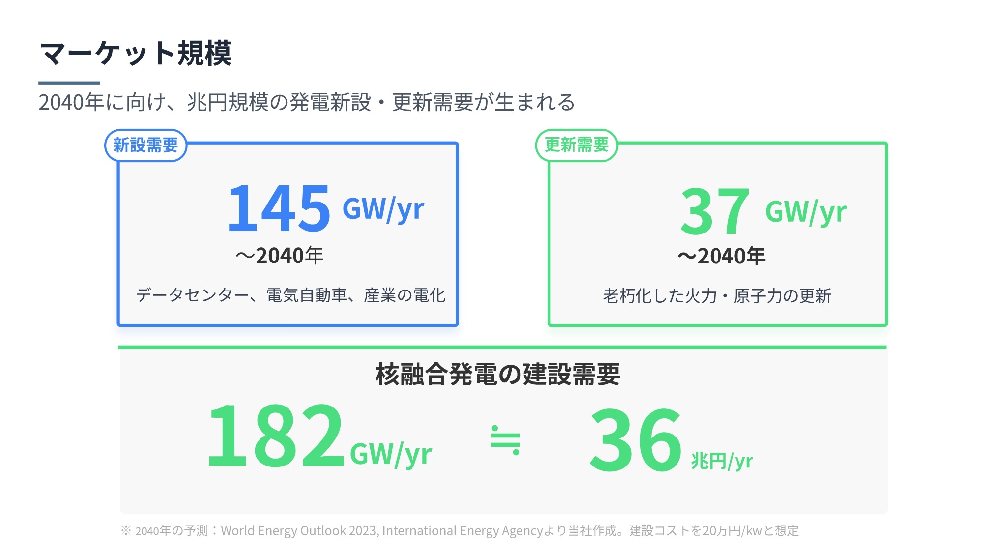 2040年には核融合発電所の建設需要だけで、年間36兆円以上の巨大なマーケットが誕生します。