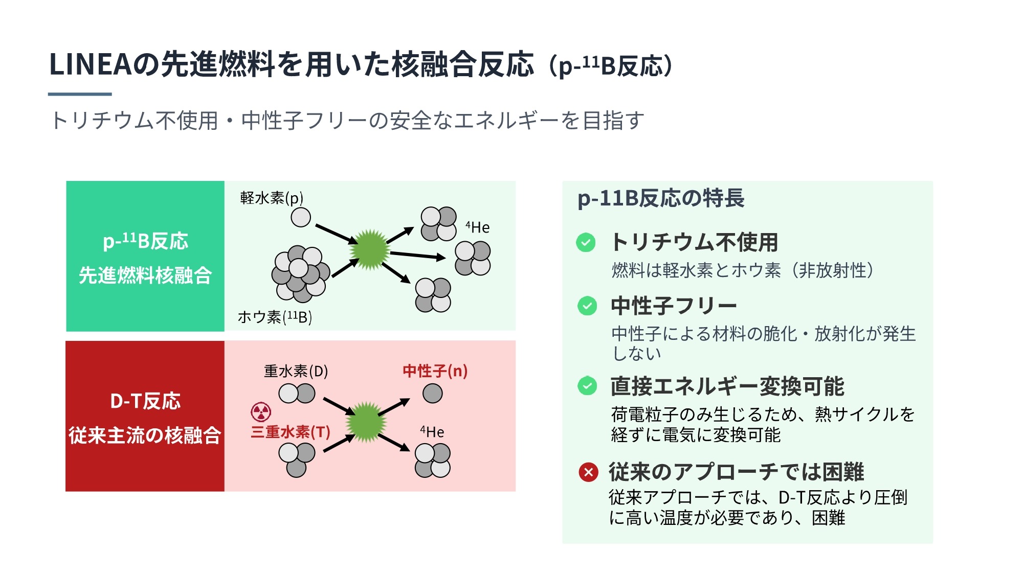 我々が挑むのは「p-11B反応(水素とホウ素11の核融合反応)」です。