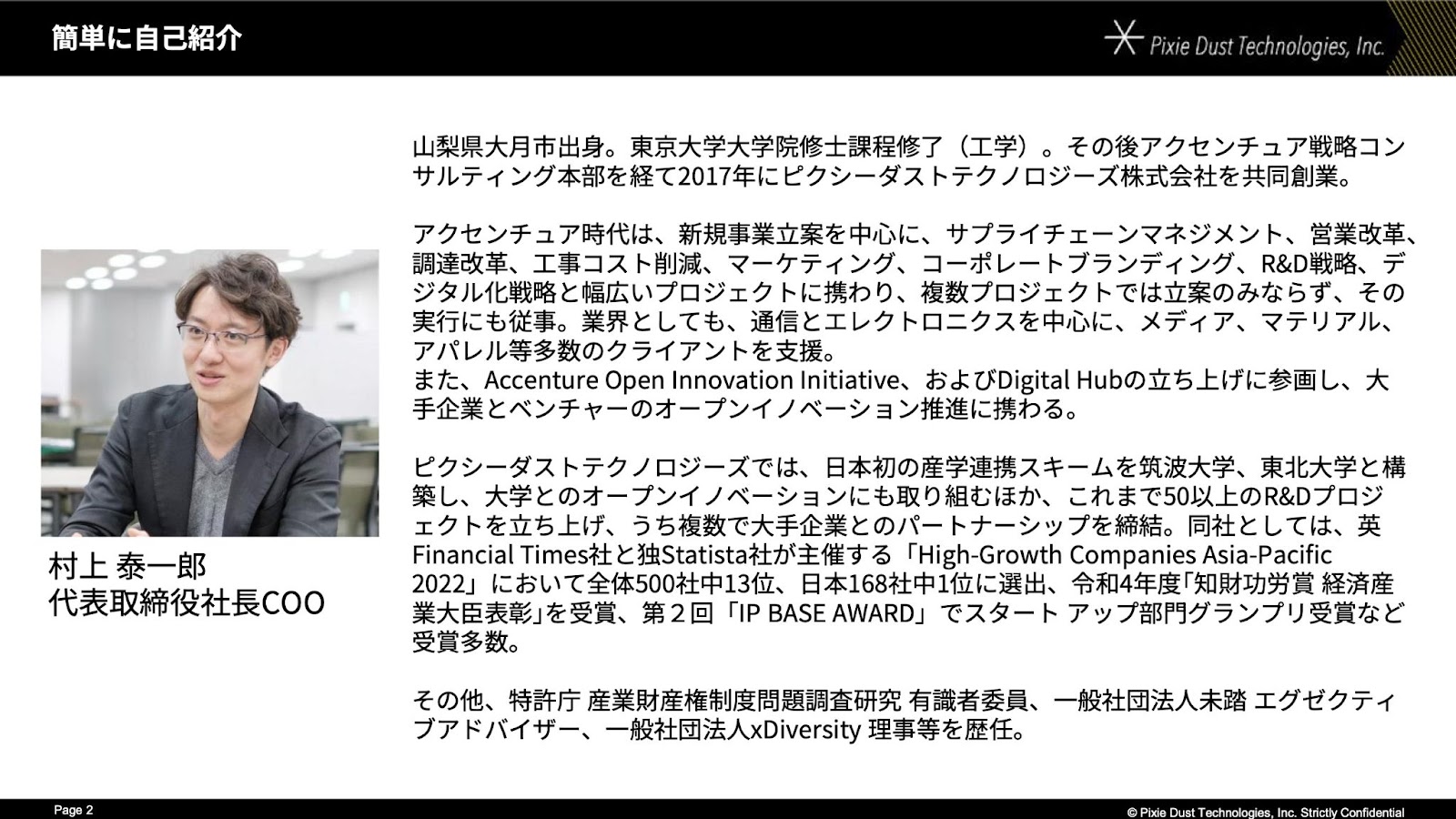 村上 ありがとうございます。ピクシーダストテクノロジーズの村上です。