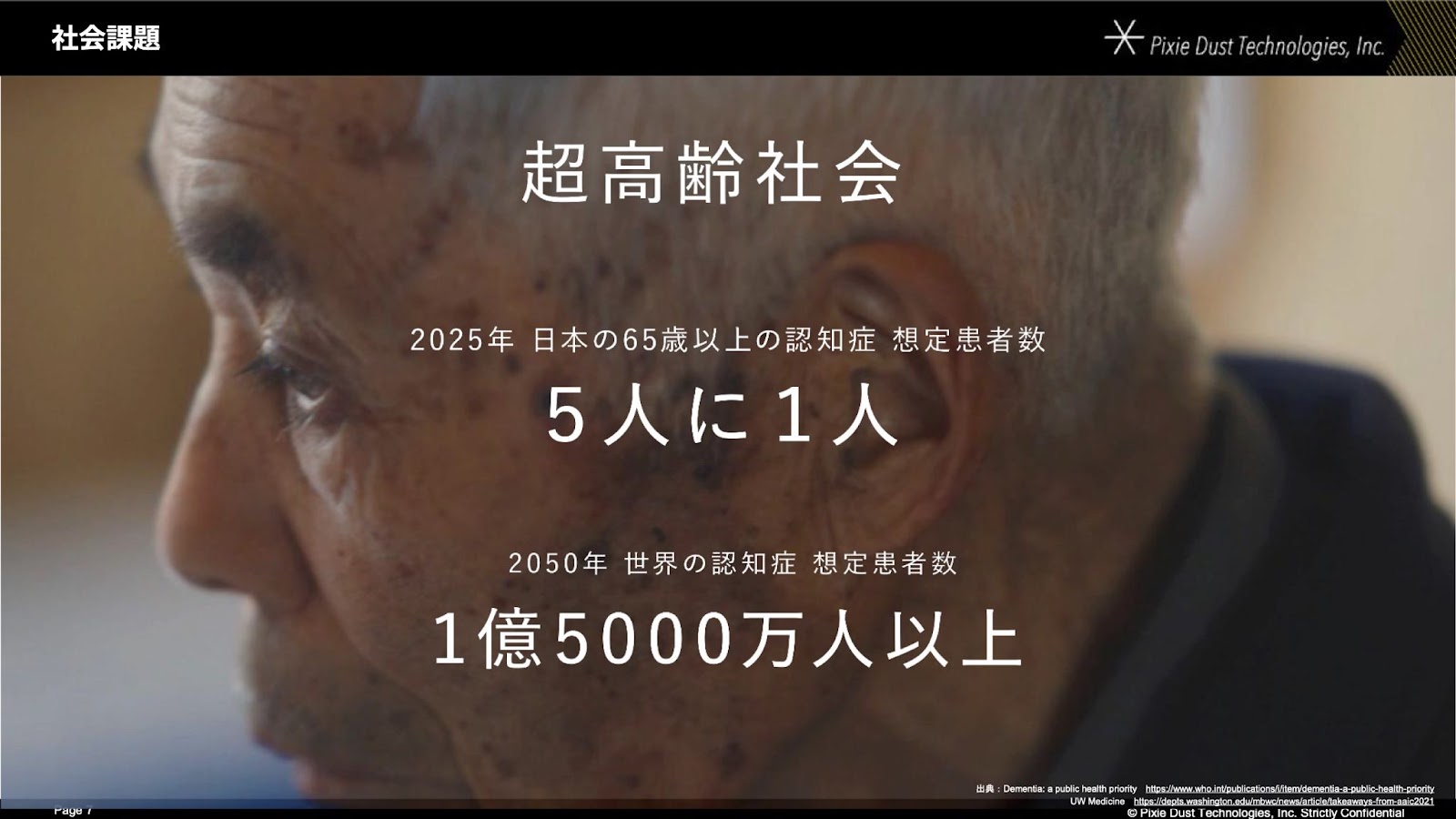 村上 泰一郎ピクシーダストテクノロジーズCOO まさに認知症っていうですね、これまでいろんな人がチャレンジしてきて、なかなか決定打が出てない、そんな領域、答えのない問題に対しても。