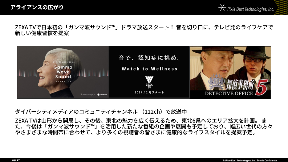 ▶ZEXA TVで日本初の「ガンマ波サウンド™」ドラマ放送スタート! 音を切り口に、テレビ発のライフケアで新しい健康習慣を提案(ピクシーダストテクノロジーズ)