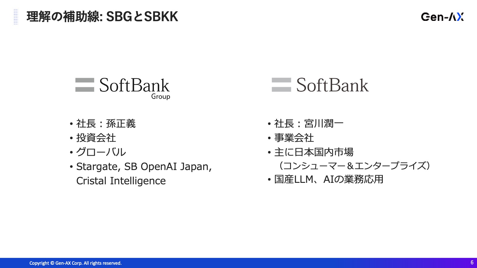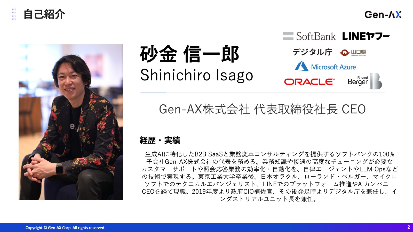 尾原 というわけで、ソフトバンクの中で戦略的なAIの子会社Gen-AXをやられている砂金さん、ぜひトリをよろしくお願いします。