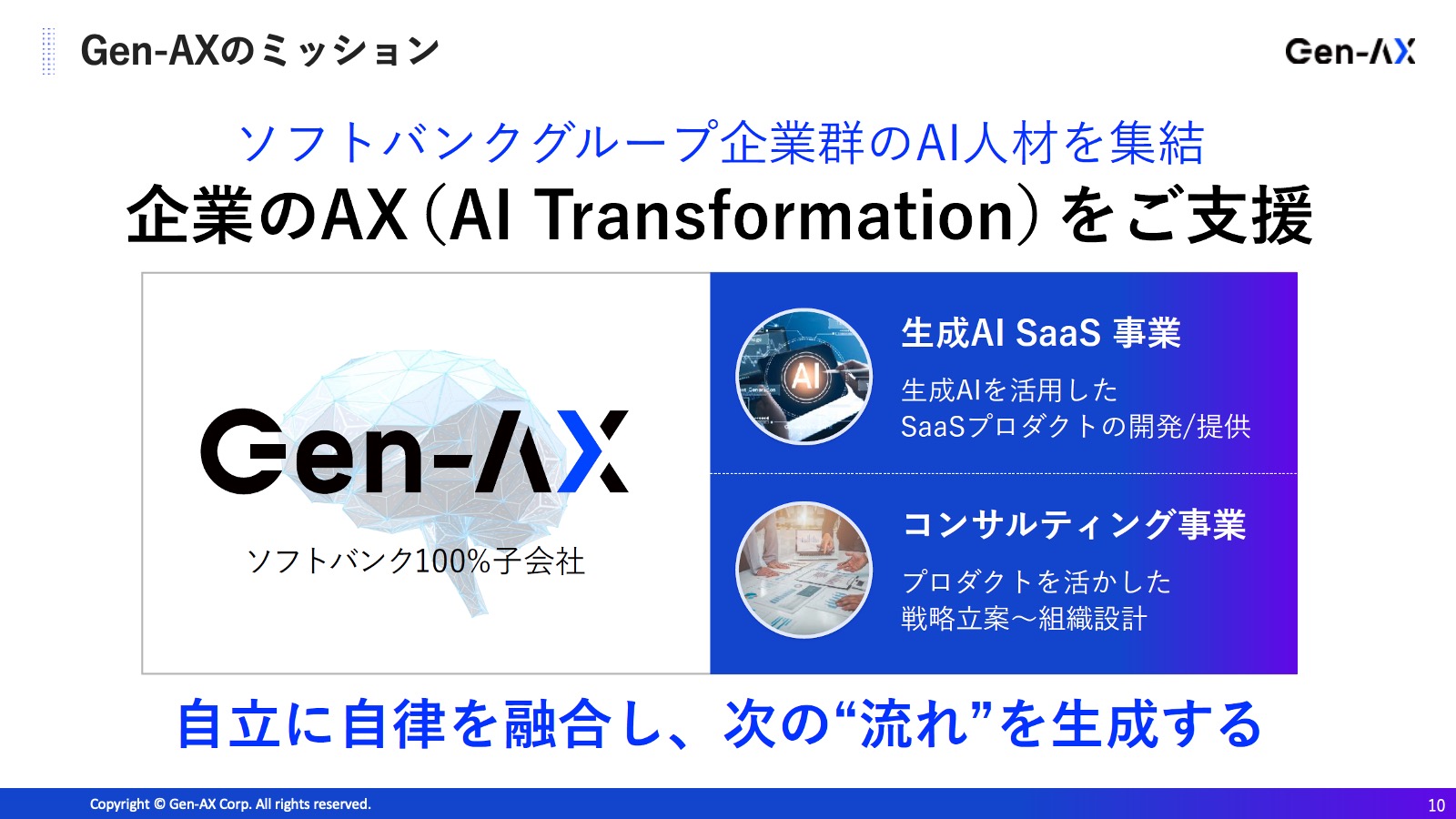 砂金 私はGen-AXという会社の代表をやらせていただいていますが、Gen-AXはソフトバンク株式会社の100%子会社です。