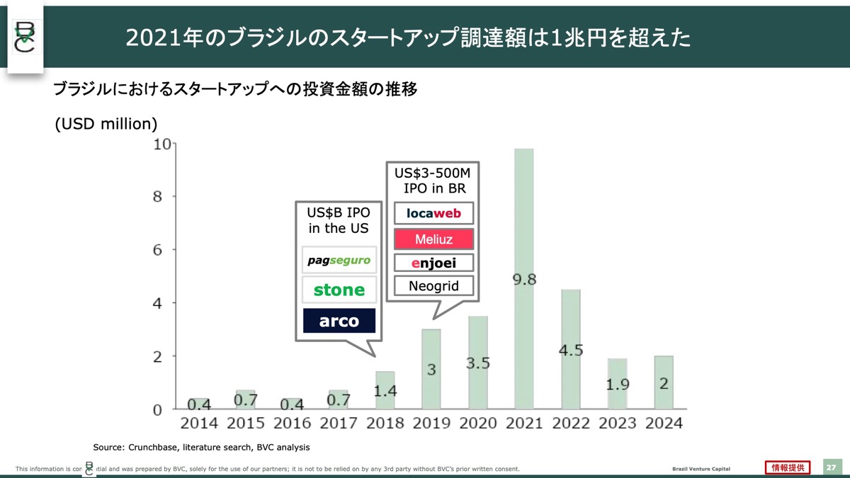ホームランがブラジル国内での上場で、平均して年に3、4件、スタートアップ系で数百億円ですね。