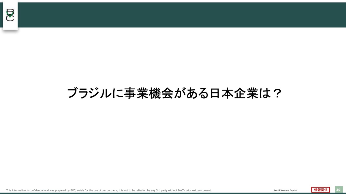 この地域の課題や論点ですが、ブラジルに事業機会のある日本企業はどこかということだと思います。