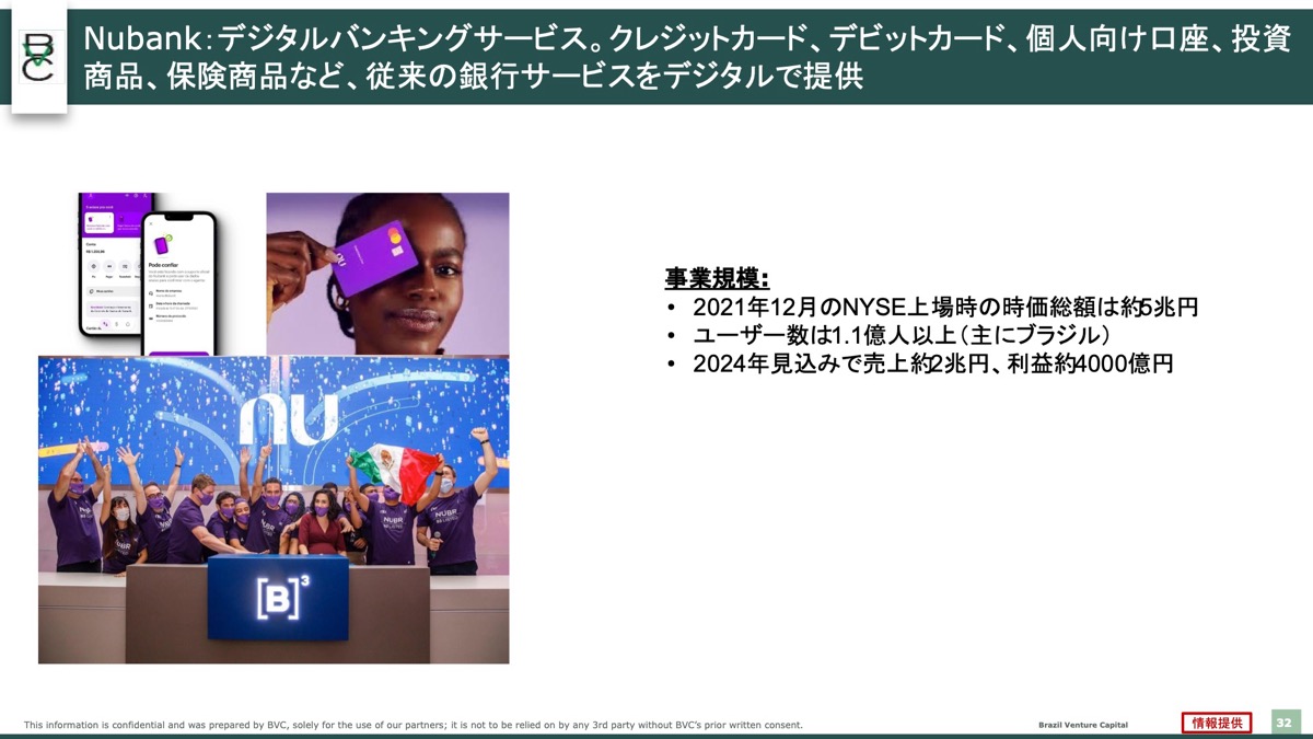 それぞれについて話すことはしませんが、例えば金融では、2013年に創業されたNubankは8年で5兆円でIPOしています。