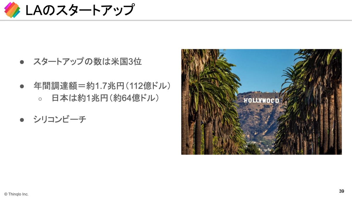 アメリカでは、Yコンビネーターの卒業生に投資していて、特にLAに特化しているわけではありませんし、ビジネスとしてもLAとは一切関わりがありません。