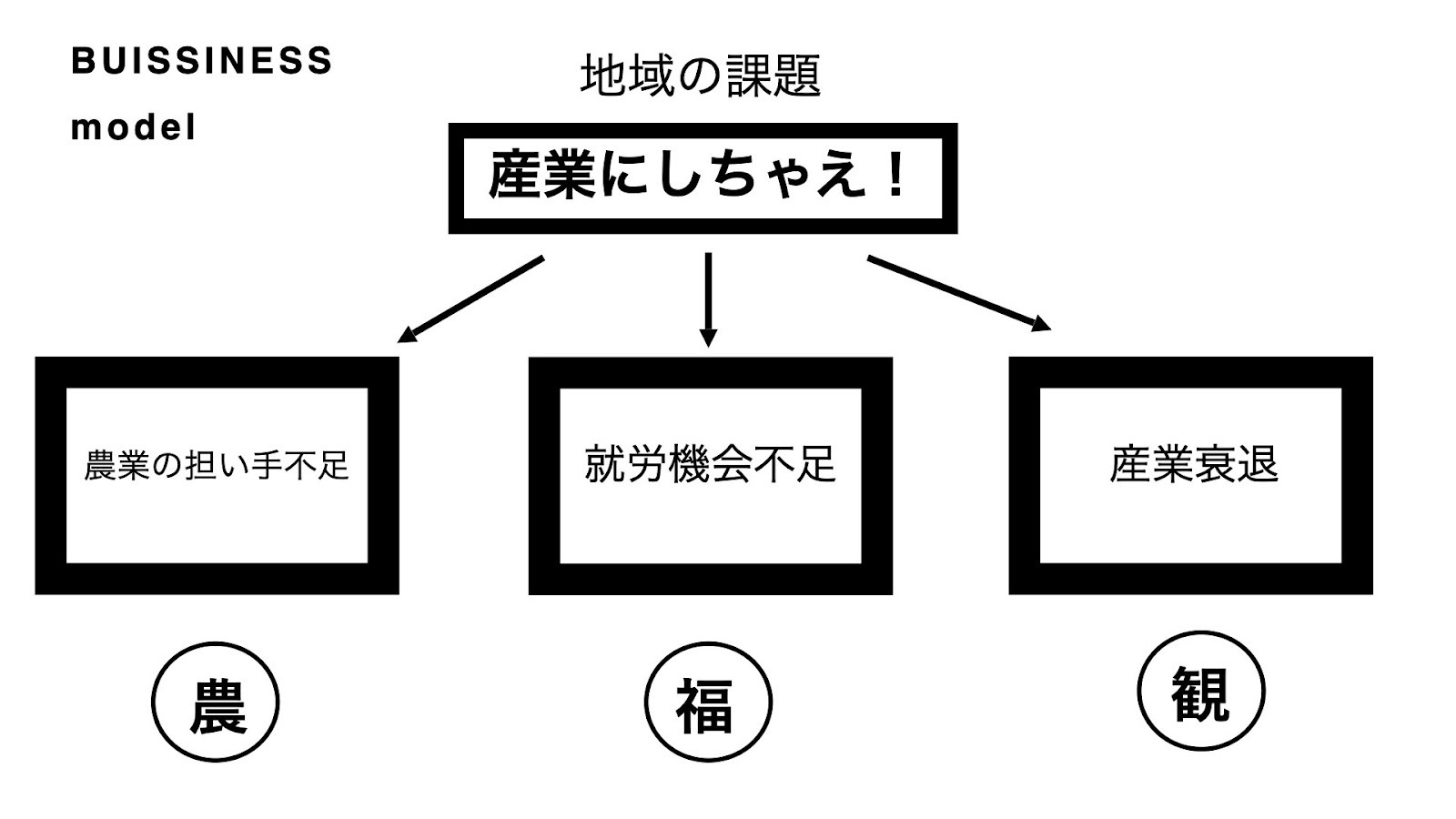 最初の「すてずにつくる」につながるのですが、人口減少という問題は、産業衰退、就労機会不足、農業の担い手不足と関わっているので、僕たちは、お菓子の製造を農業、福祉、観光と組み合わせ、さらに、原料調達、製造、販売という個々のフェーズに発展させています。