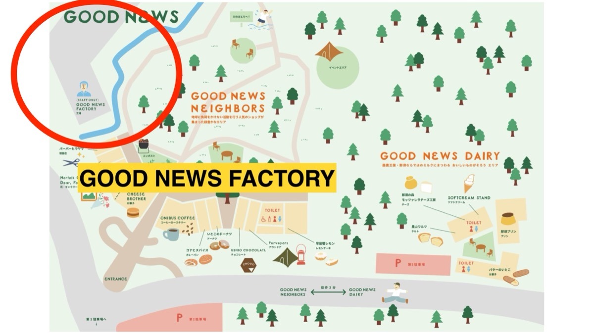 宮本 左上にあるのが、お菓子を作っているGOOD NEWS FACTORYという工房があります。