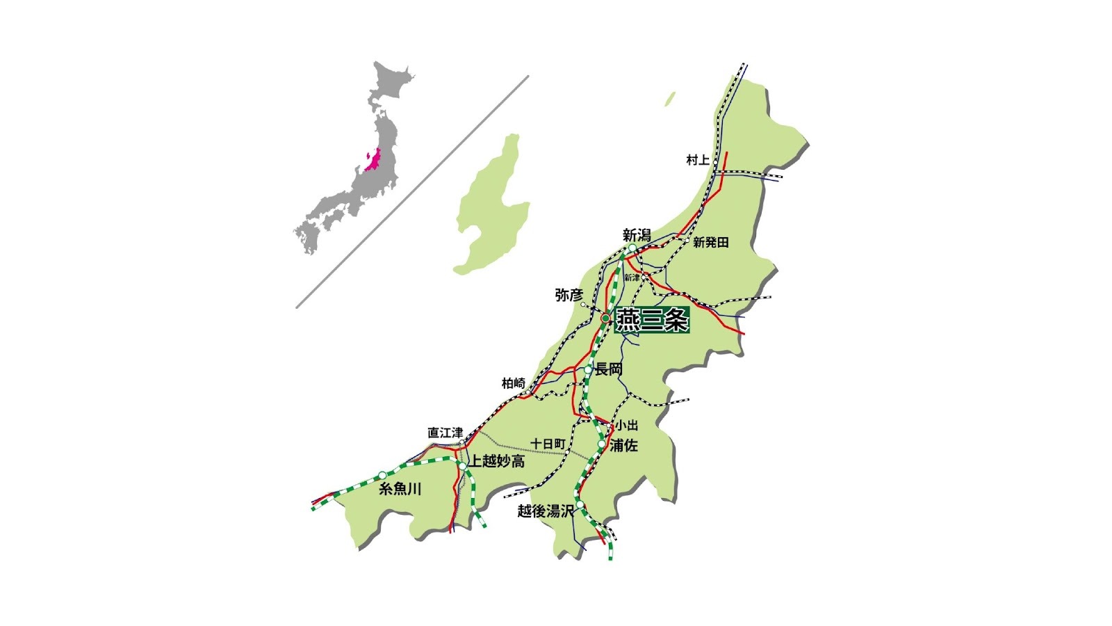 新潟県のほぼど真ん中、県央地域にありまして、燕市と三条市が合わさったエリアの呼称です。
