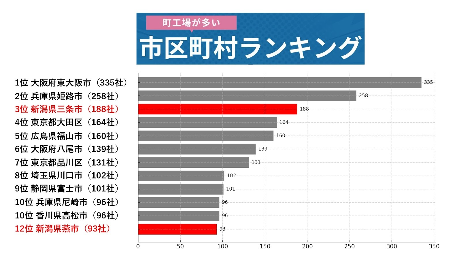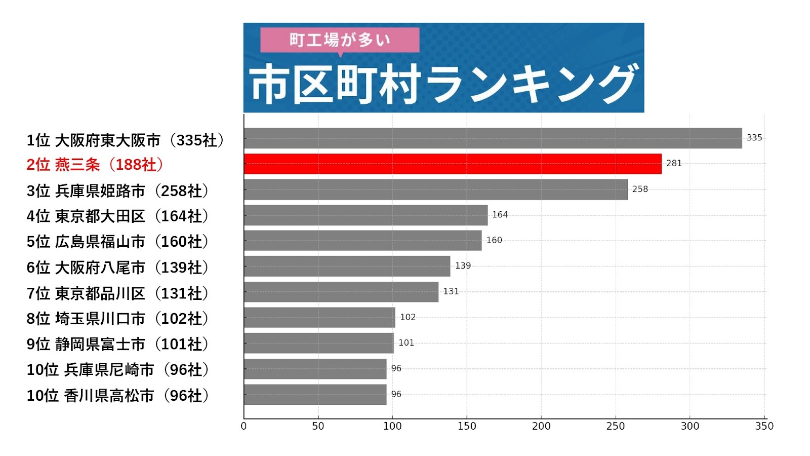 あの有名な、2025年の町工場が多い市町村ランキングでは、1位が東大阪市でした。