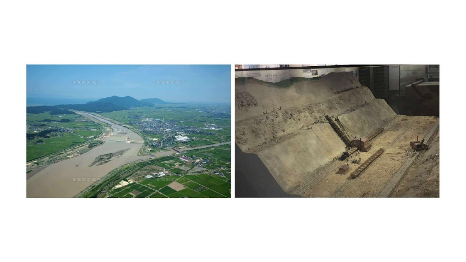 左の川は、のべ1,000万人が参加した大工事で、100年前に掘られた人口水路です。