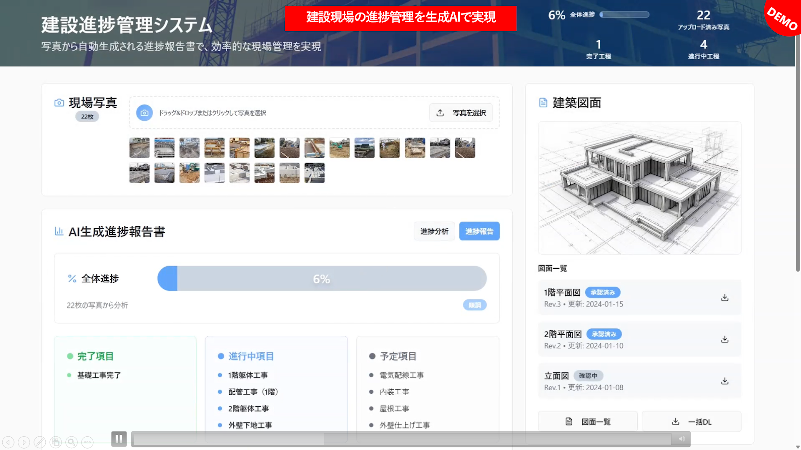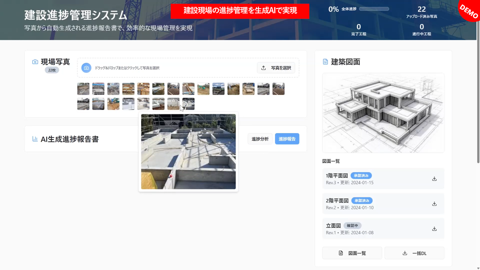 現場の写真が22枚あるので、これで進捗分析をさせます。