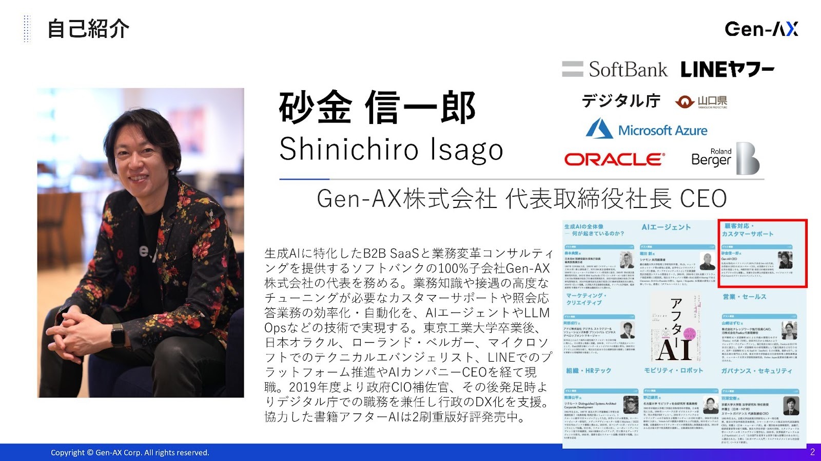 では、孫さんがどう見ているのか、実際にAIをどう作っているのかを、Gen-AXの砂金さんからぜひお願いします。