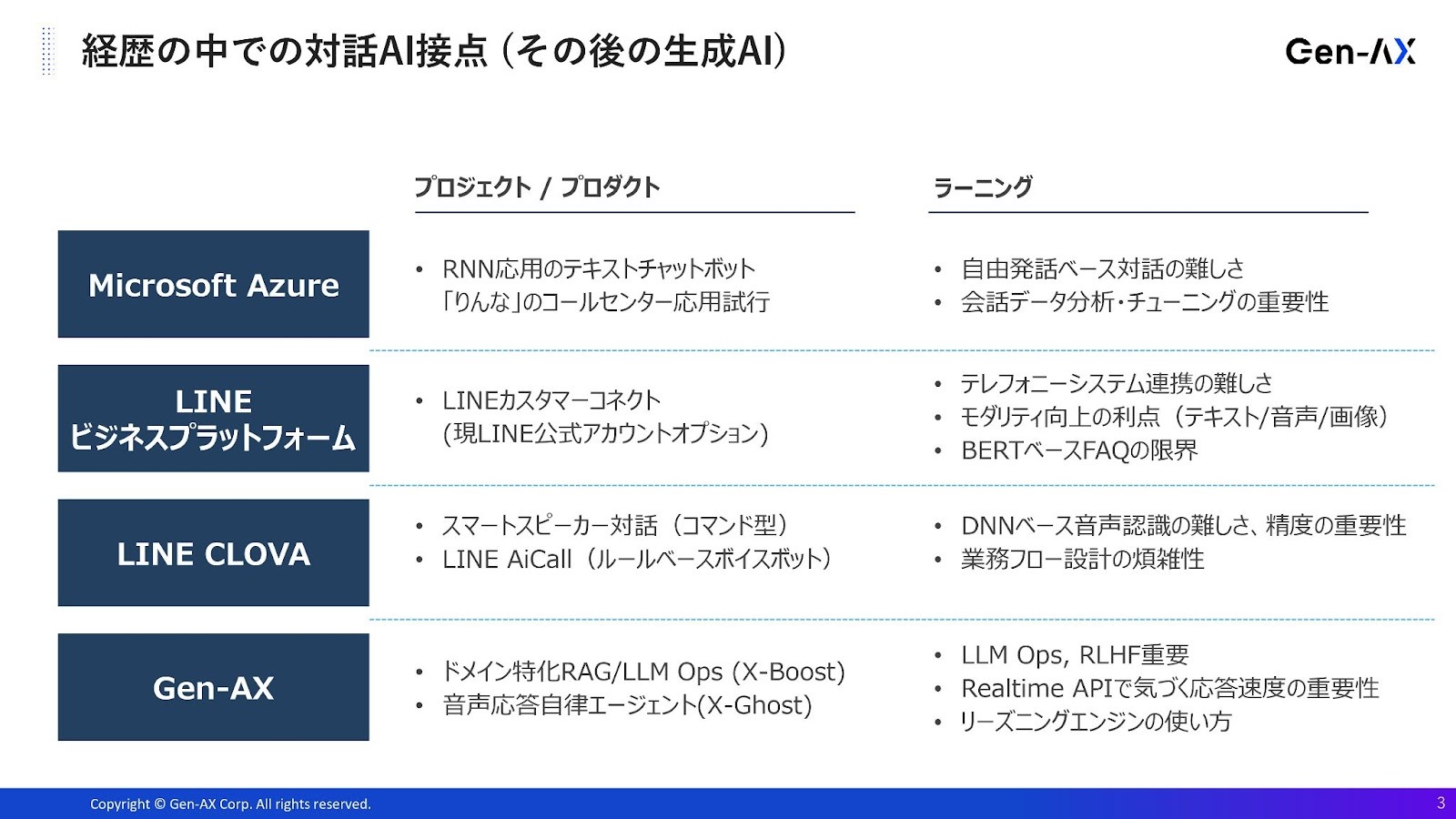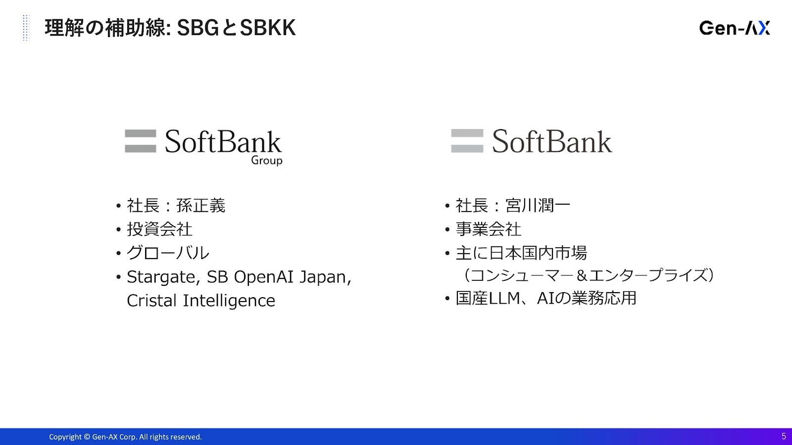 孫さんや宮川さんからすると、「子会社、孫会社のメンバーは全部自分の部下」みたいなジャイアン理論が発生して、生成AIはお前が詳しそうだなみたいな感じになり、現在は、ソフトバンクの100%子会社でGen-AXという会社の代表をしています。