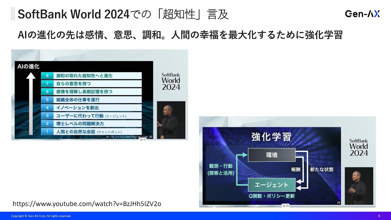 1年前の2024年の10月(のSoftBank Worldの特別講演では)、前日までのリハーサルの資料とは全く違ったのですが、孫さんが突然強化学習が大事だと言い出して、なるほど、孫さんはそういう話をするのだなと思いました。