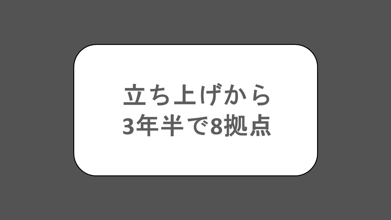 そんな状態から3年半で8拠点つくってきたのが、僕たちの最大の特徴です。