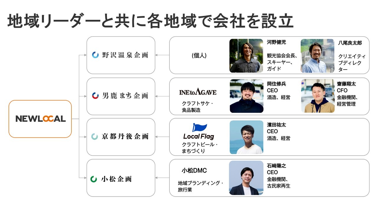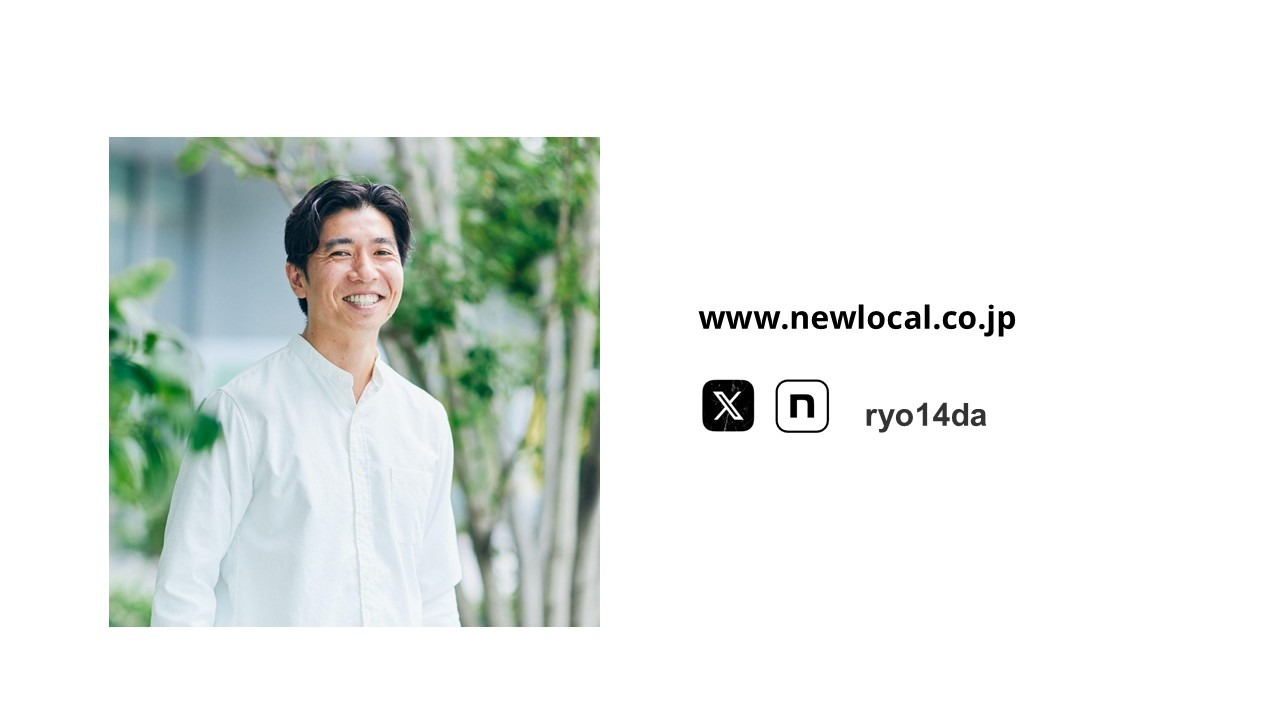 2022年 株式会社NEWLOCAL創業。「地域からハッピーシナリオを共に」をミッションに日本各地で不動産開発を中心としたまちづくりを行い、人口減少社会における持続可能な地域モデルの実現を目指す。現在は長野県野沢温泉村・御代田町、秋田県男鹿町、京都府丹後地域、石川県小松市、香川県丸亀市で展開中。半分は東京、半分は各地を飛び回る生活。