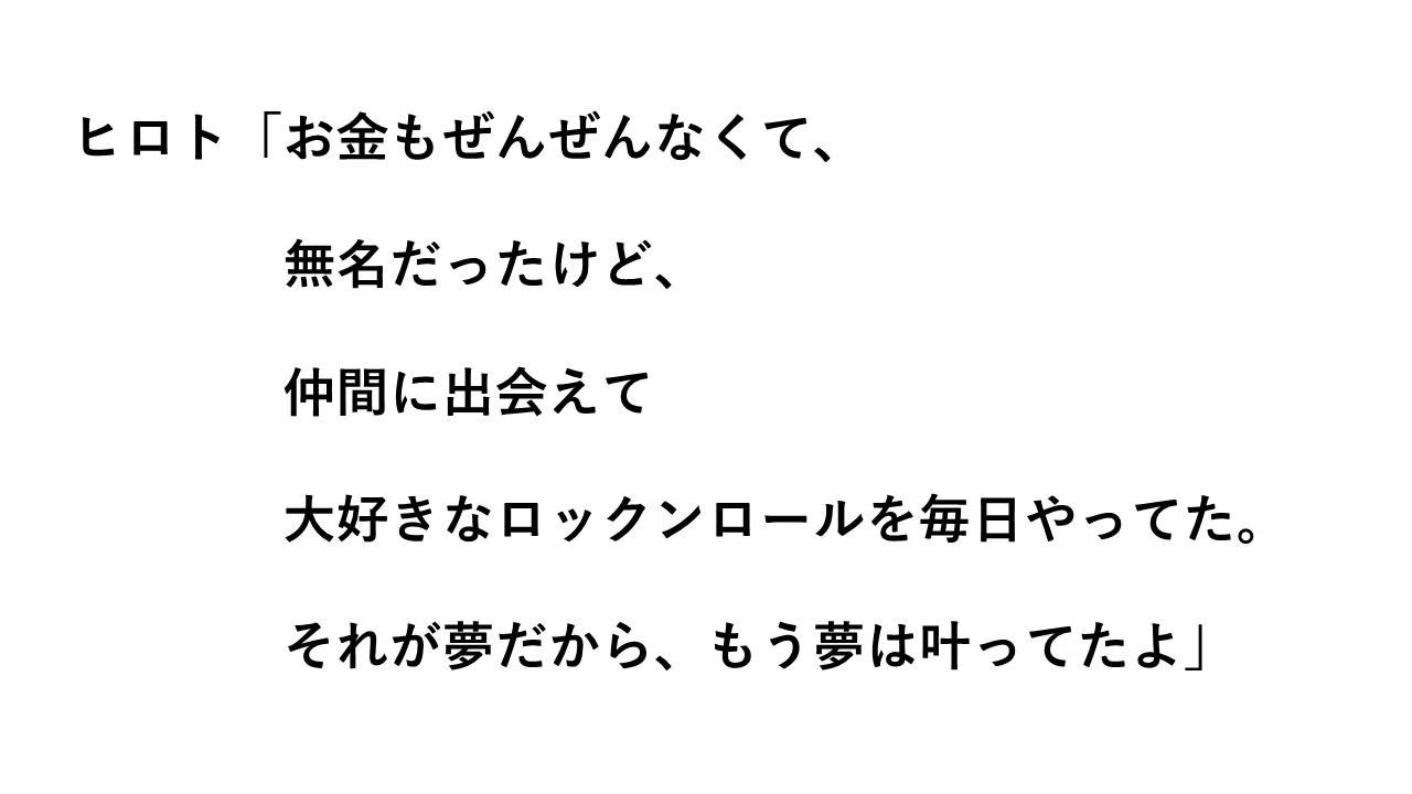 自分自身が本当に好きな仲間と大好きなロックンロールを毎日やれれば、お金がなかろうが、バイトしなくてはいけなかろうが、夢は叶っているということを言ったのです。