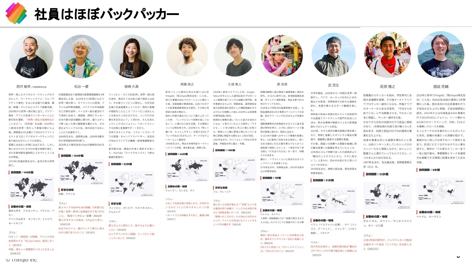 先ほども登壇者の皆さんとちらっと話したのですが、作った会社も変わっていまして、基本的に社員みんながバックパッカーです。
