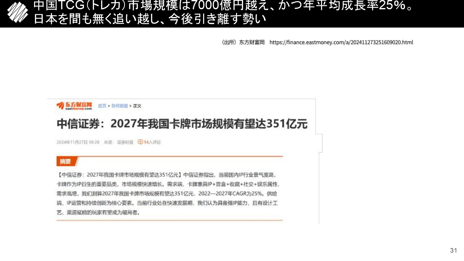 金田 とはいえ、先ほど申し上げたように、トレカの主要ブランドのうち、当社が取り組んでいないのはほとんど残ってないので、事業としての限界が見えています。