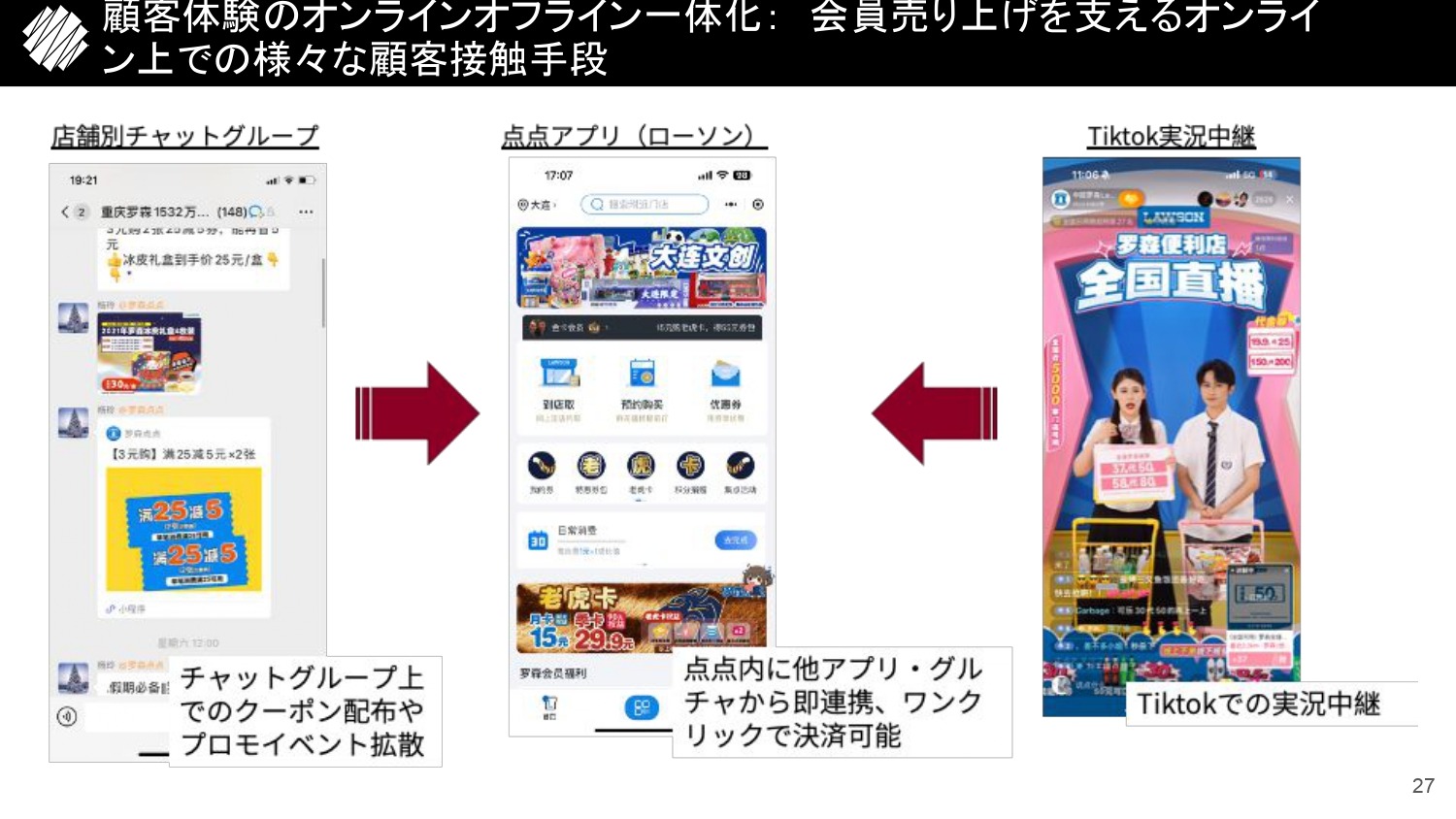これは日本で言うところの会員アプリですが、中国では決済情報と、その裏にあるサードパーティ、ファーストパーティのデータはつなぎ放題なので、あらゆる形でお客様と接点を作ることのできるプラットフォームです。