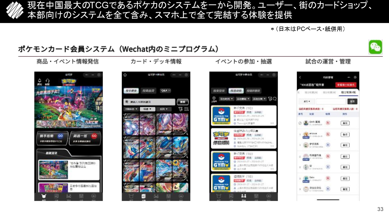 カードゲームはオフライン行為ですが、中国にいればオフラインだけで完結することはありえないですし、オフラインとオンラインをつなげることで体験の質を向上させることができると考え、この事業を始めました。