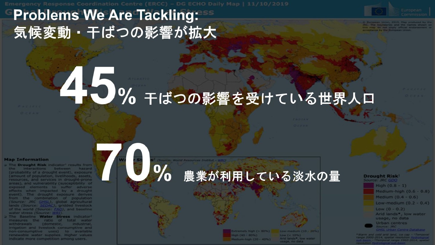 そして農業が利用する水の量はかなり多いため、この2つの要素が合わさると、収量を減らしてしまう、もしくは収量がなくなってしまう生産者がいます。