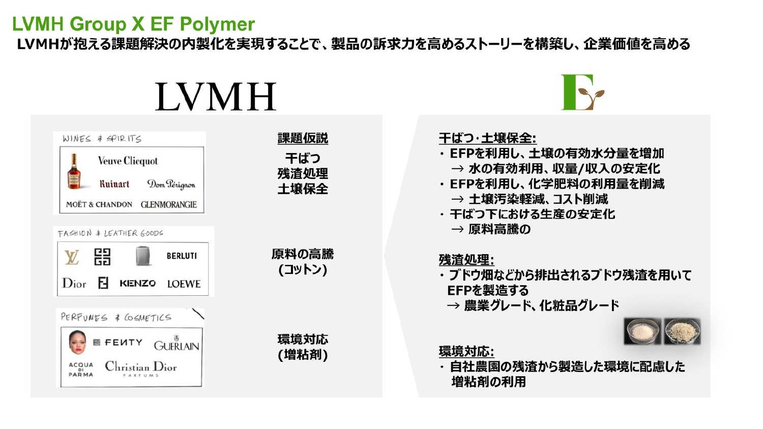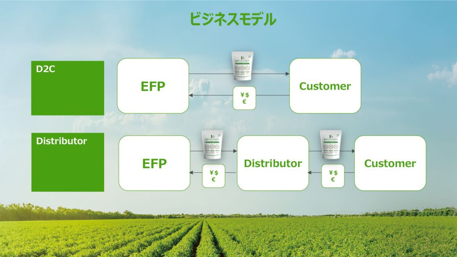 ブランディングはつまり、農業資材にEF Polymerがこっそり入っていれば良いプロダクトに見える状態にすることです。