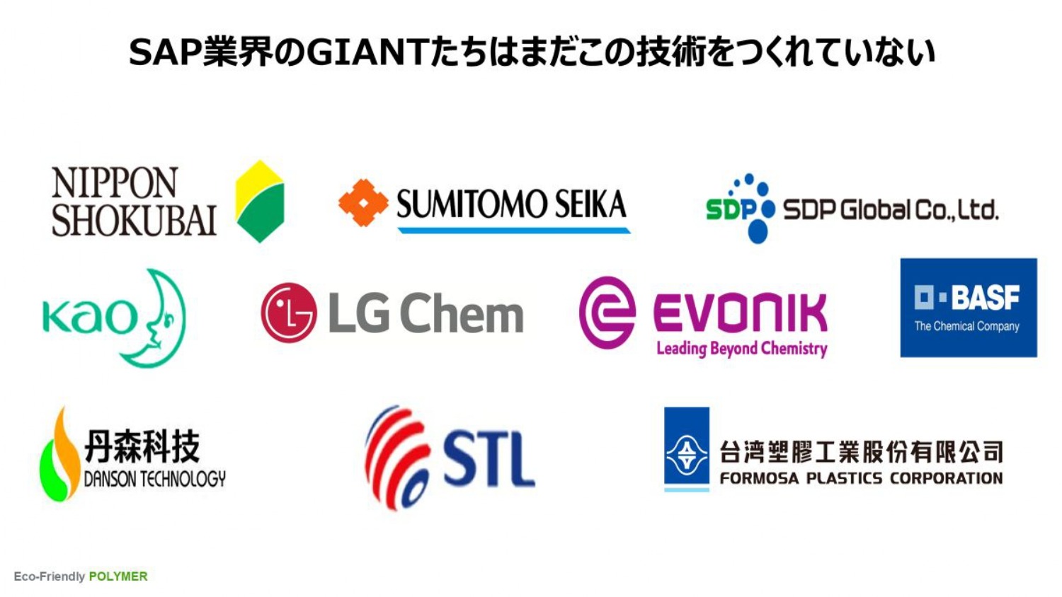 化学ポリマーはSAPと呼ばれ、SAP業界の巨大企業は、まだこの技術を開発できていません。