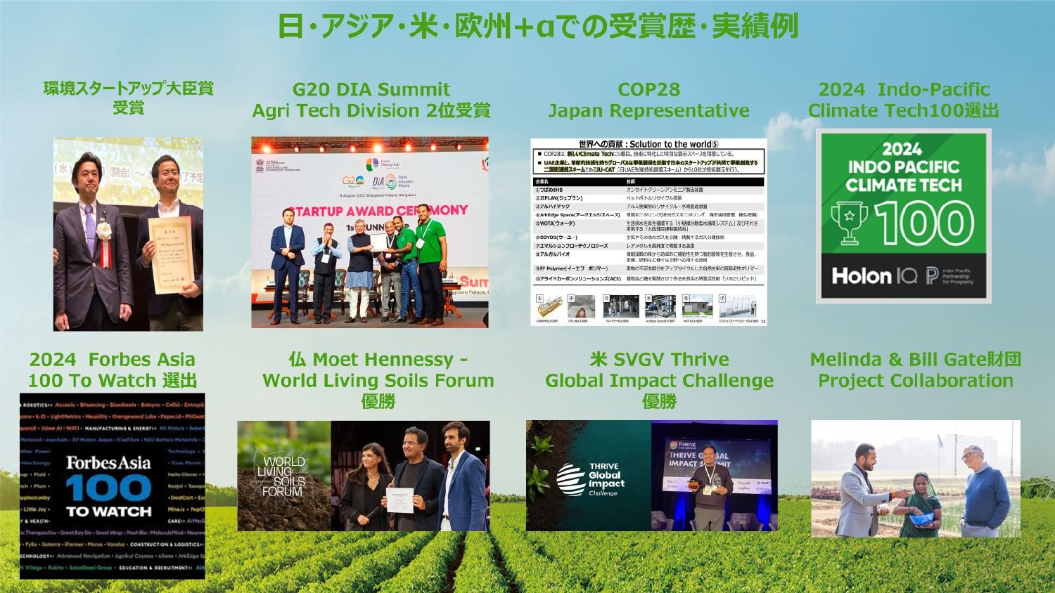 アメリカでも、カゴメが50億円ほど出資して作ったSVGが運営する、アグリテックアクセラレーターTHLIVEでも優勝(※)し、出資をしてもらっています。