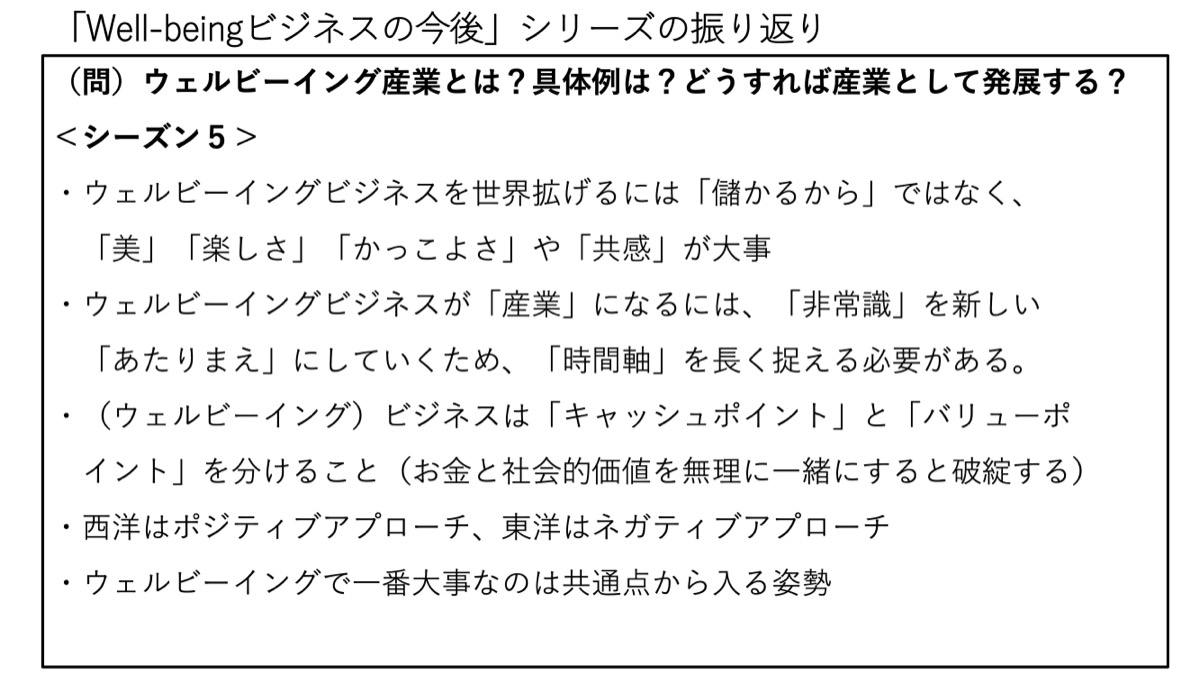 Well-beingビジネスの今後を語るシーズン6