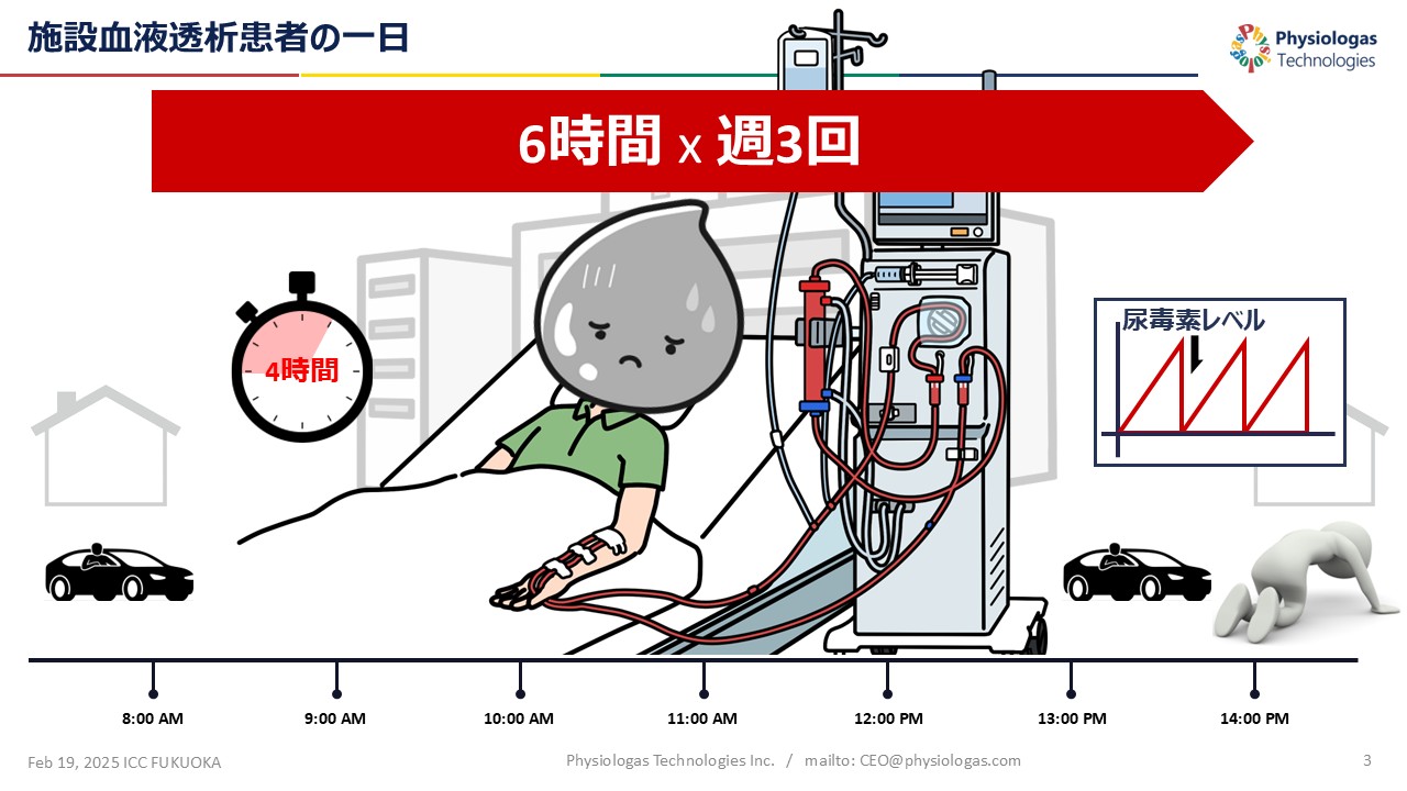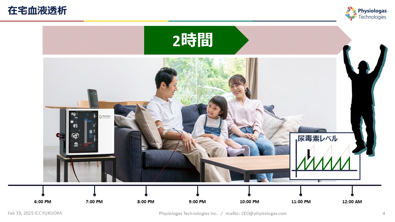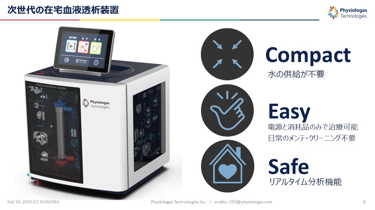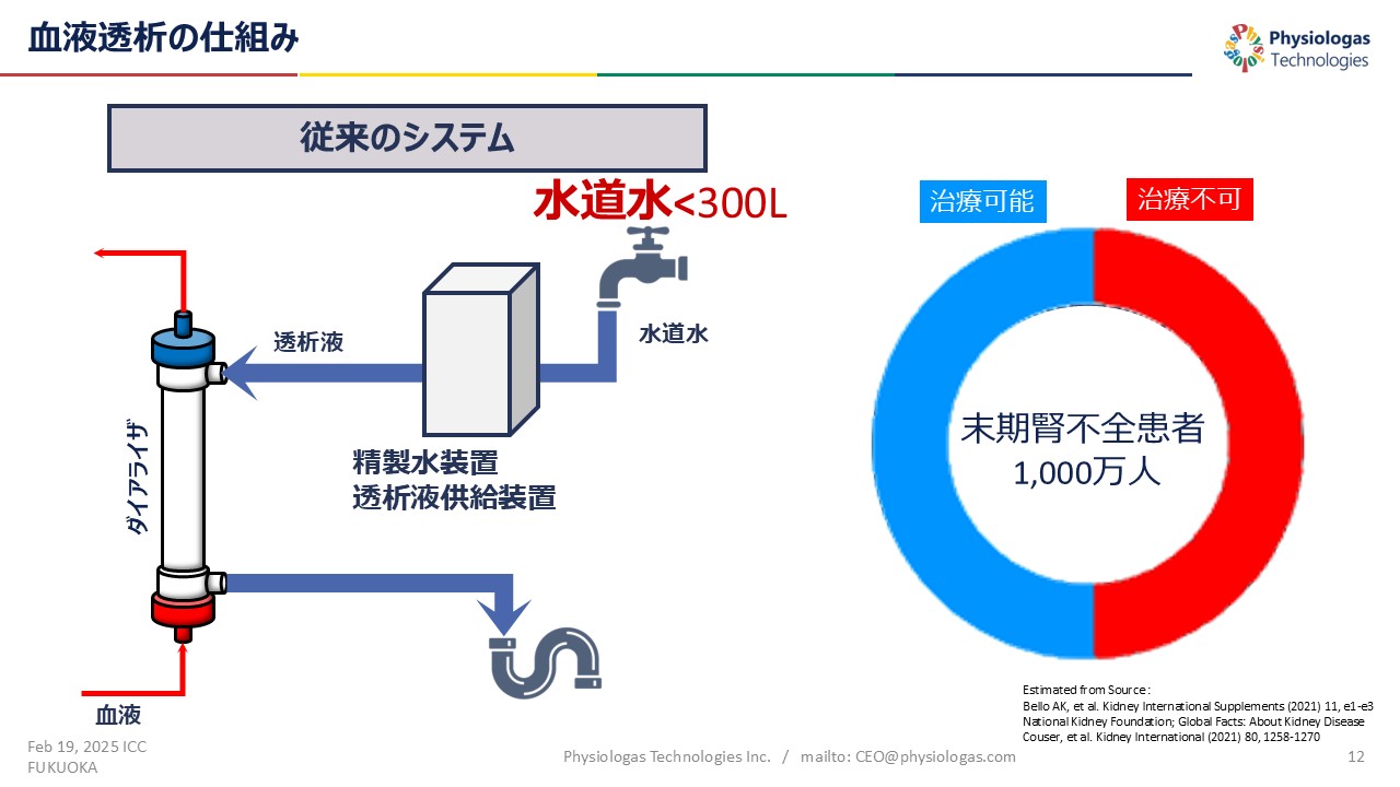 ICC FUKUOKA 2025のセッション「-Well-beingビジネスの今後(シーズン6) -〜2025 くるぞ、ウェルビーイング〜」、全5回の②は、フィジオロガス・テクノロジーズ 宮脇 一嘉さんが登場。週3回通院、1回あたり4時間を要する血液透析治療の現状を変える、未来の在宅用透析装置を紹介します。コア技術は透析液の再循環システムです。患者のQOLを高め、医療費削減効果を生む取り組みを、ぜひご覧ください!