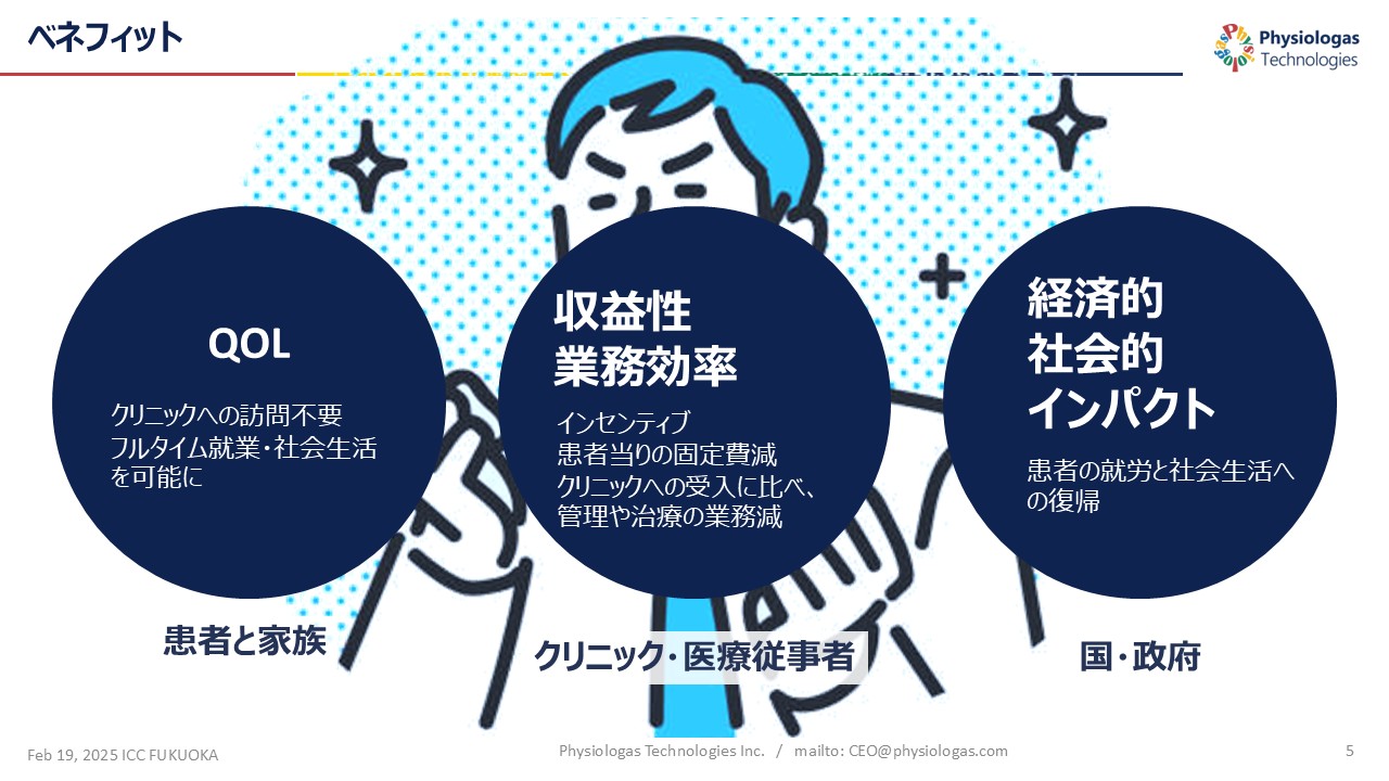患者のQOLが上がるのもそうですが、病院にとっても、患者が病院に来なくても自分で治療をするだけで診療報酬が入るため、収益性と業務効率がかなり上がります。