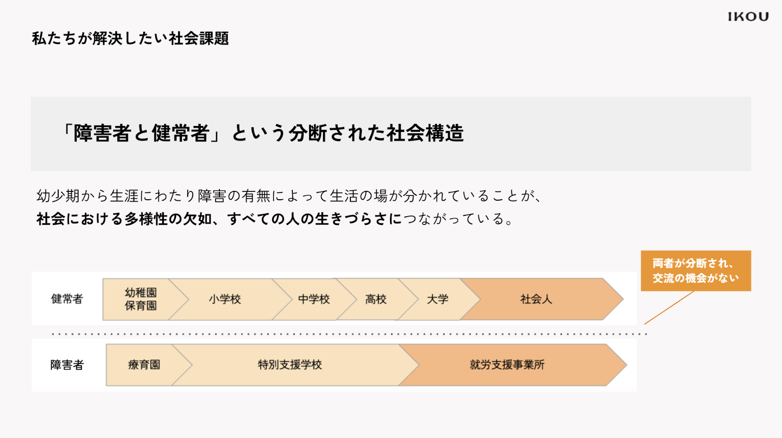 解決したい社会課題は、障害者と健常者の分断です。