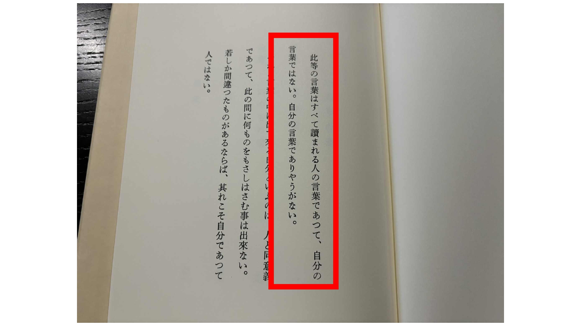 「此等の言葉はすべて讀まれる人の言葉であつて、自分の言葉ではない。自分の言葉でありやうがない。」