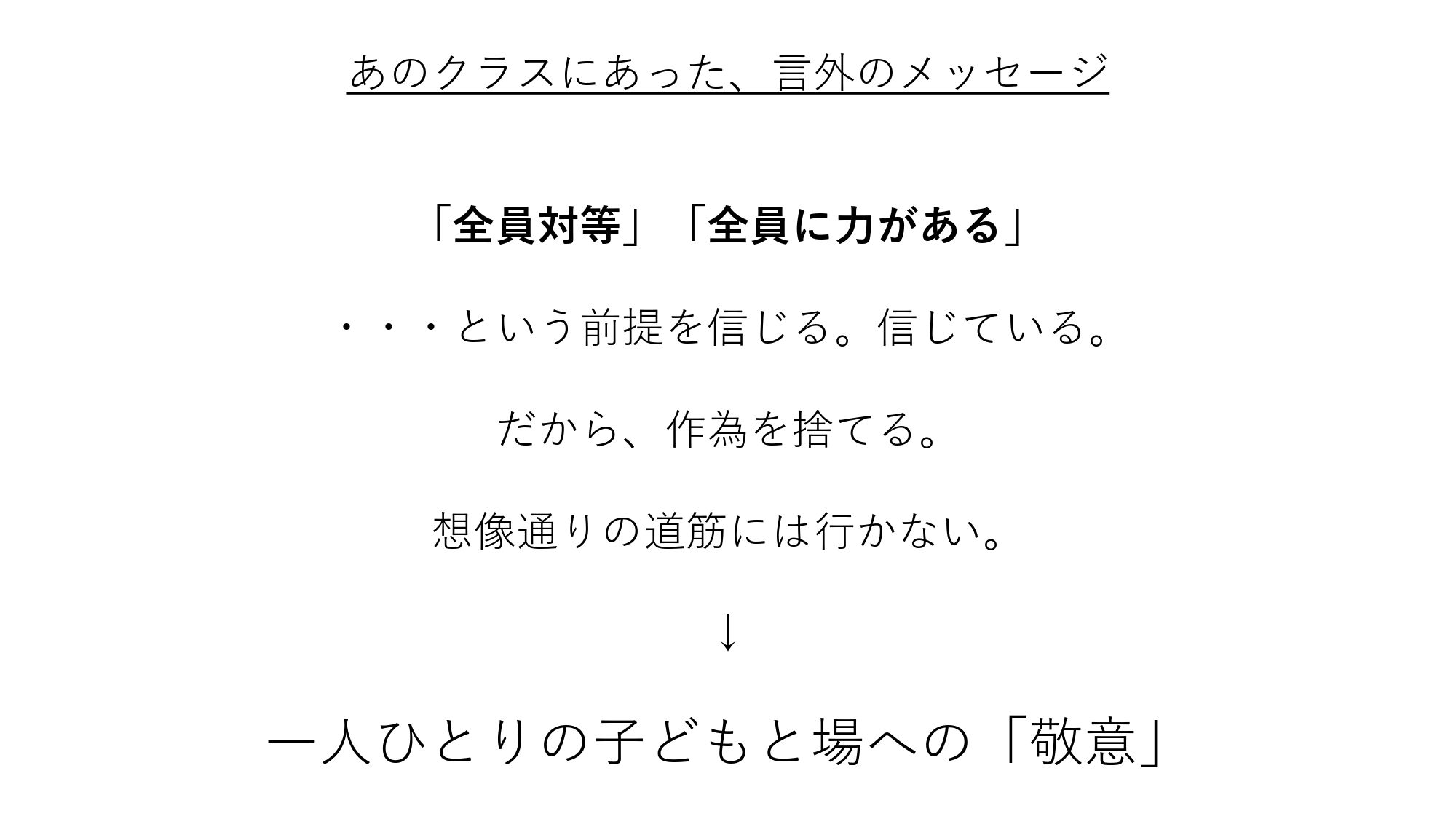 あのクラスの中には、先生が言葉に出していない、言外のメッセージがあったと思います。