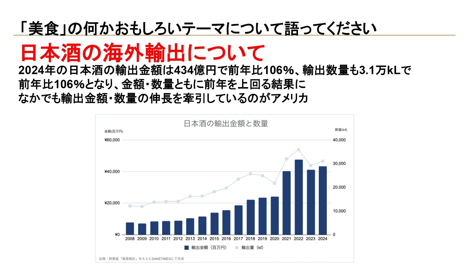 山本 日本酒の海外輸出については皆さんご存知だと思いますが、ここ何十年という単位で伸びています。