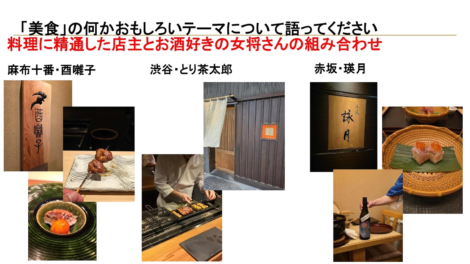 今日、「美食」の何かおもしろいことを、という雑な振りに対し、4つのアジェンダを頂きました。