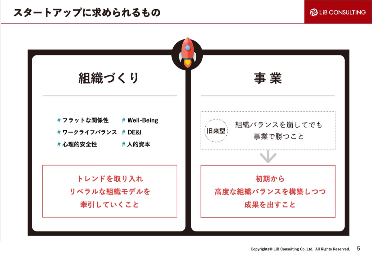 「フラットである」「心理的安全性がある」など、50年や100年続く会社ではなかなか取り入れられない要素もいち早く取り入れて、組織モデルを作ることを求められます。