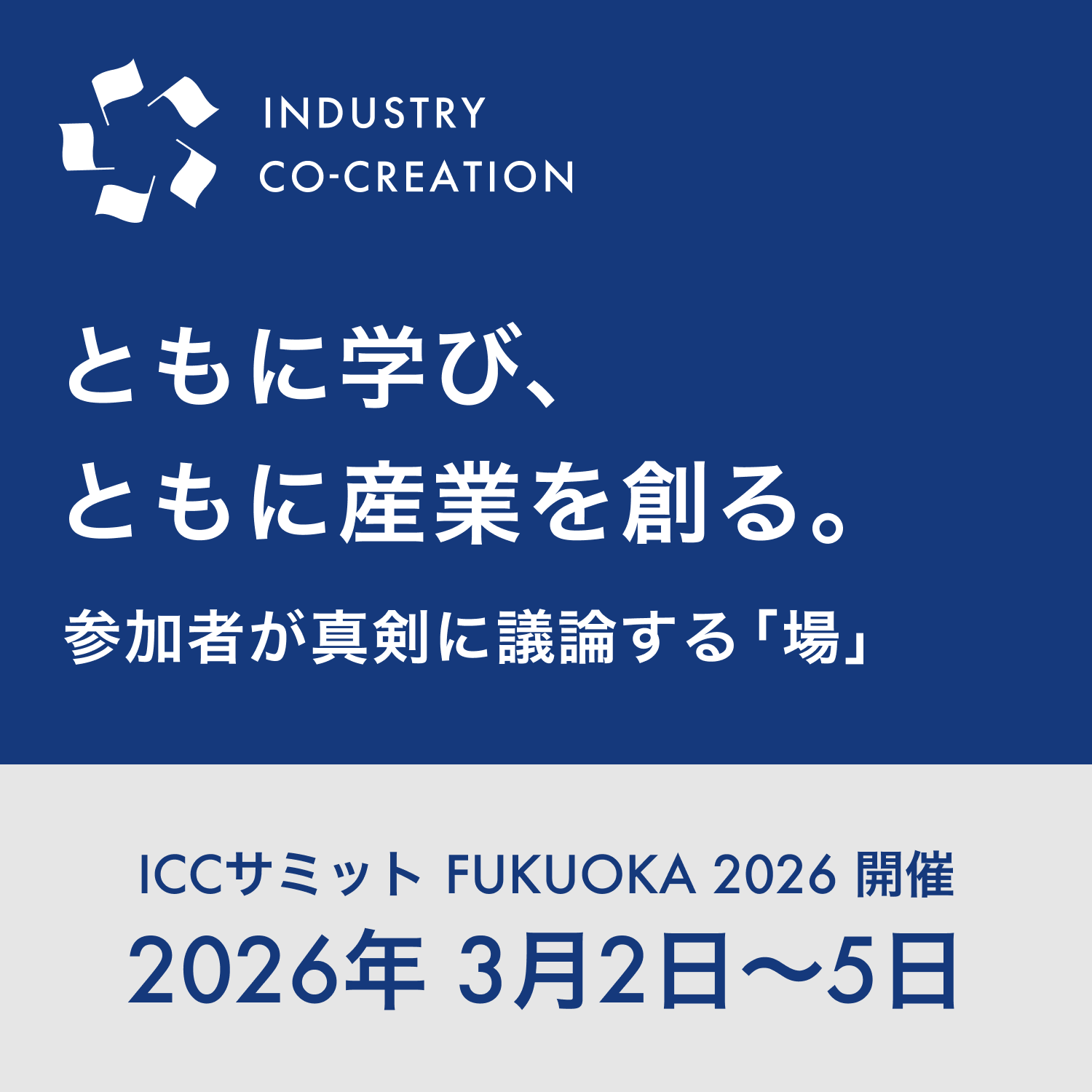 ICCサミットは新産業のトップリーダー600名以上が集結する日本最大級のイノベーション・カンファレンスです。次回 ICCサミット FUKUOKA 2018は2018年2月20日〜22日 福岡市での開催を予定しております。参加登録は公式ページをご覧ください。