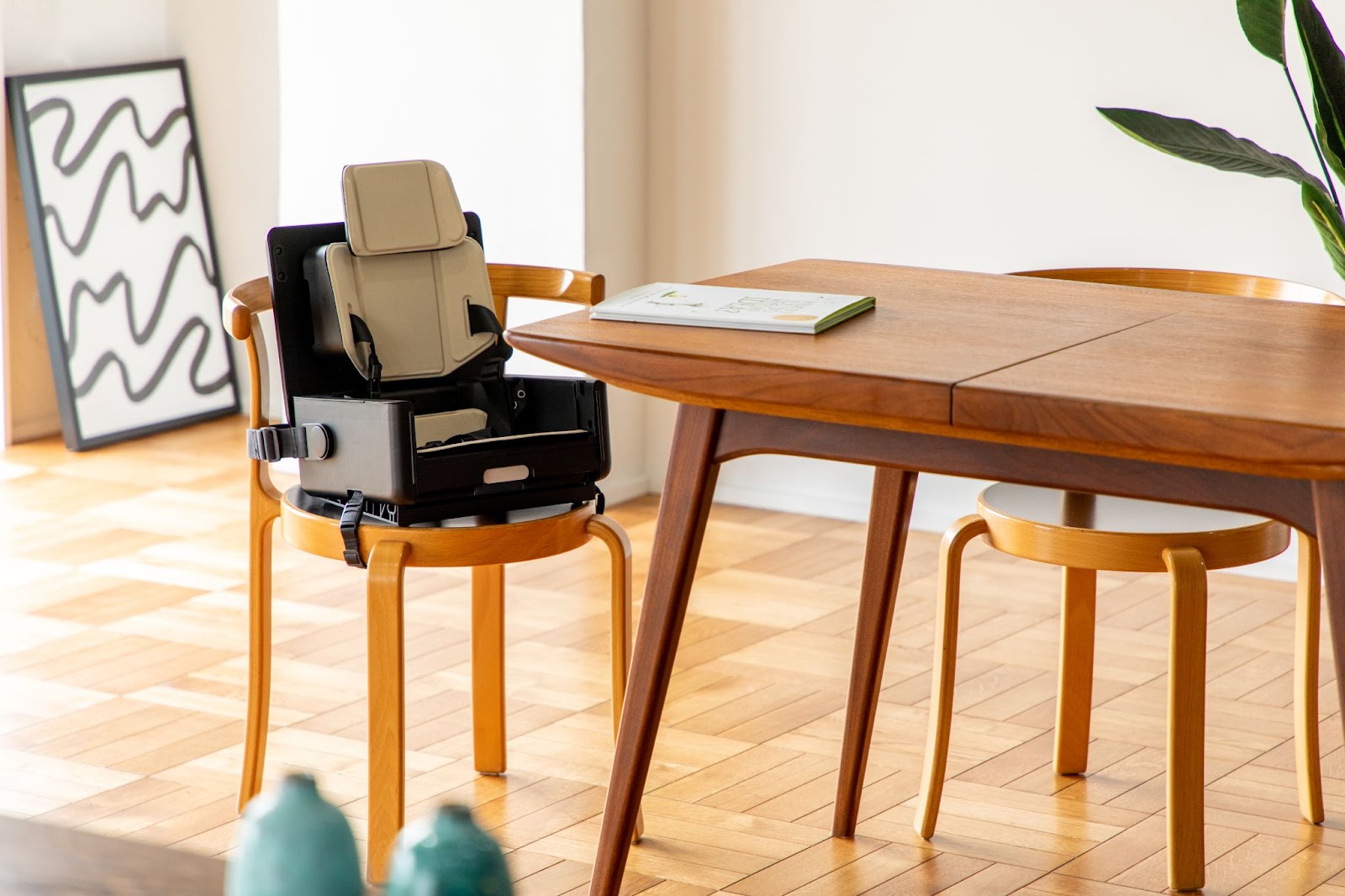 IKOUポータブルチェアは、家でも外出先でも使える折りたたみ式キッズチェアです。「外出先で座る手段がない」という障害児育児の課題を起点に開発し、障害のある・なしにかかわらず、乳幼児を安全に座らせることができます。コンパクトに持ち運べて大人用椅子にも簡単に取り付けられるため、家族の行動範囲が広がります。