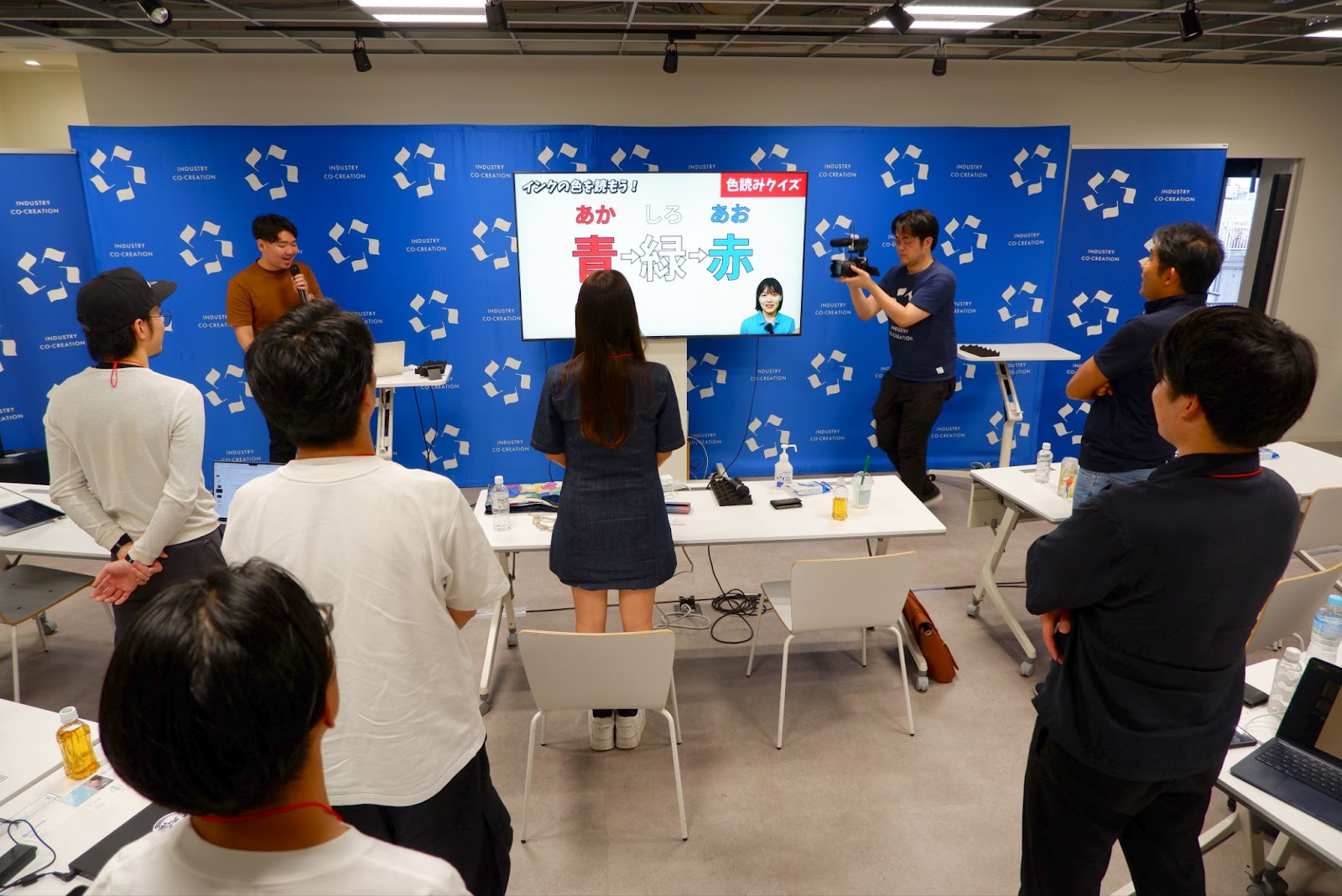 この日の運営はカタパルト運営チームが担っている。プレゼンにあたってスライド投影やスライド内の動画再生の確認、マイク、司会、現物配布や投票集計など、すべての要素が含まれるこのワークショップは、チームにとって本番に近いリハーサルになる。裏側では膨大な量のSlackメッセージが飛び交っていた。
