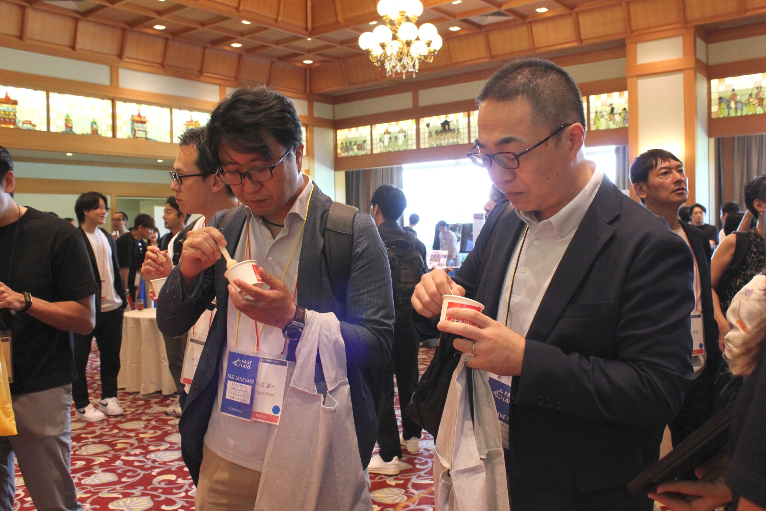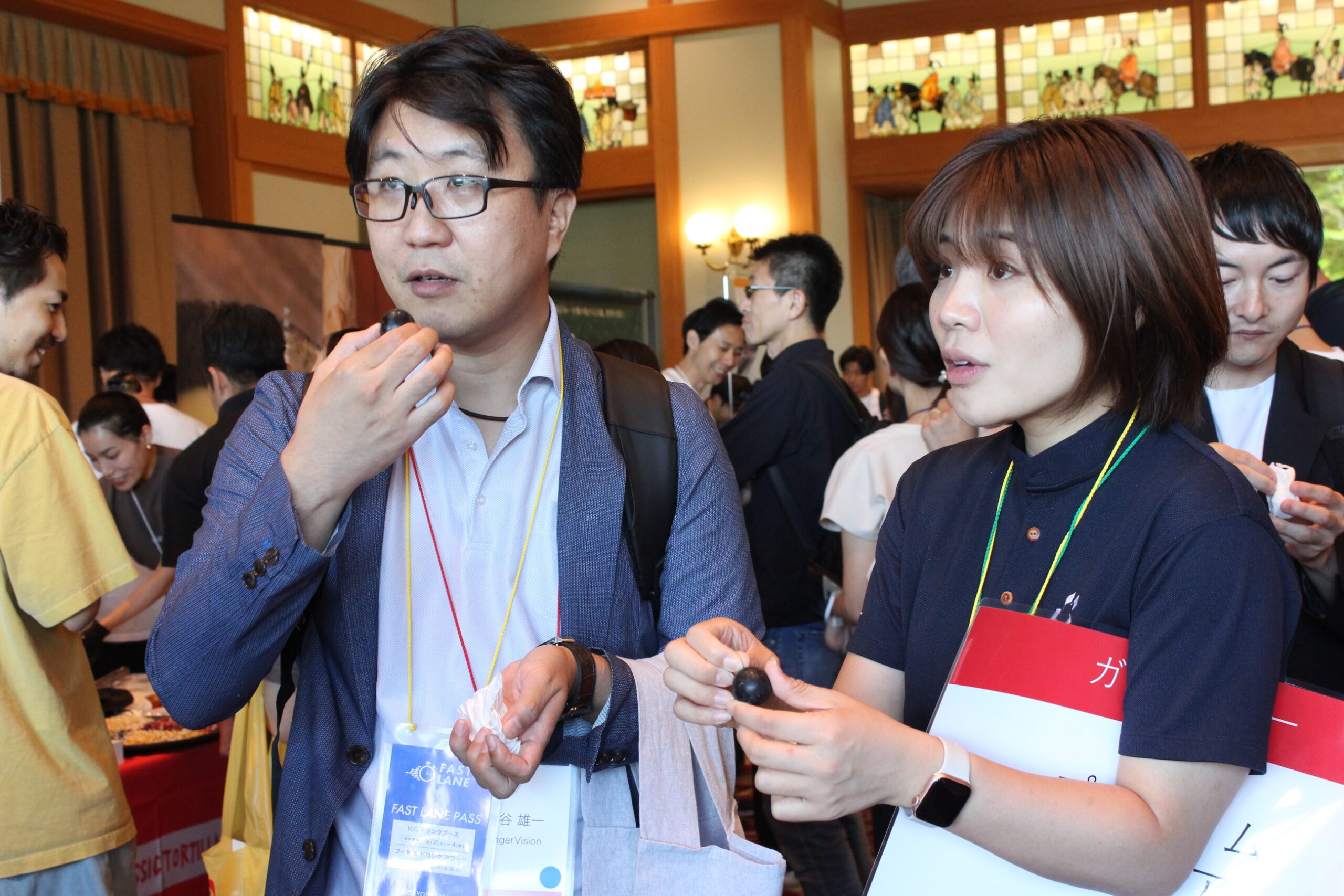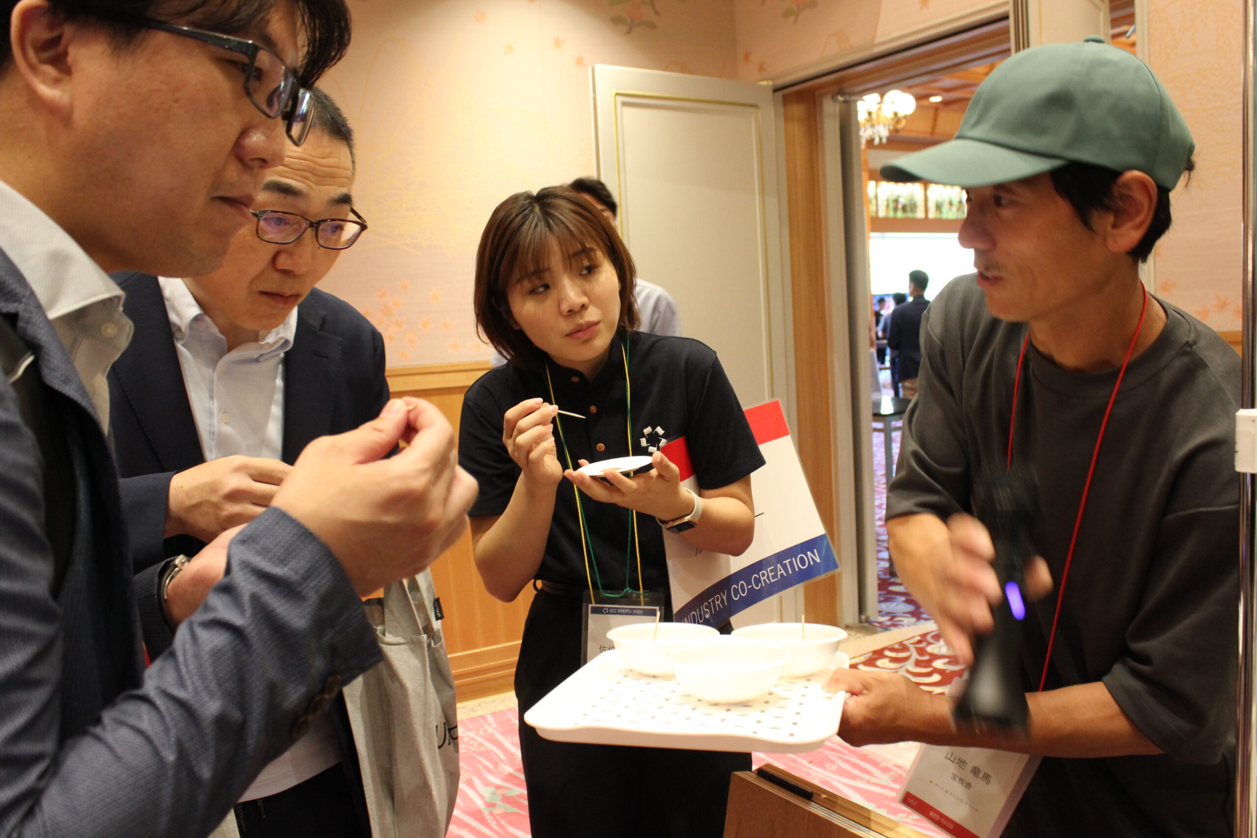 ここからは統括の朴 理沙さんのガイドで、今回18ブースが並ぶ会場を、ブース担当者の説明を聞きながら試食していく。これはアワード審査員と並ぶプレミアムガイドツアーだけの体験となった。