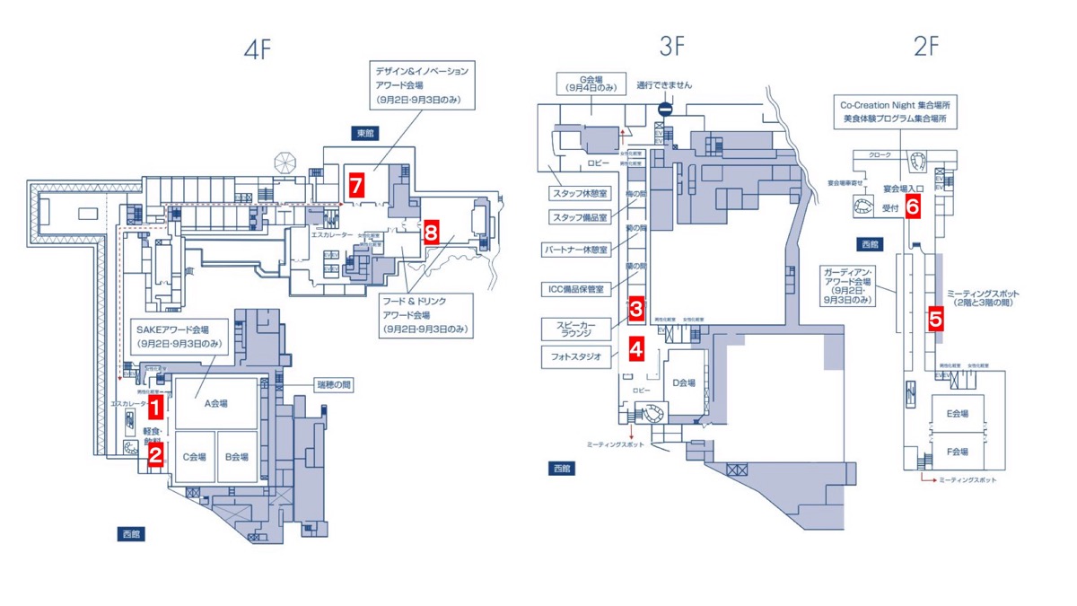 ガーディアン・アワードに続いて、ツアーポイント⑥として、2階の受付デスク、美食、Co-Creation Nightの集合場所を確認したあと、歩行距離が長い京都会場ではぜひ次回も利用いただきたい、知る人ぞ知るエレベーターに乗って、再び4階まで移動した。
