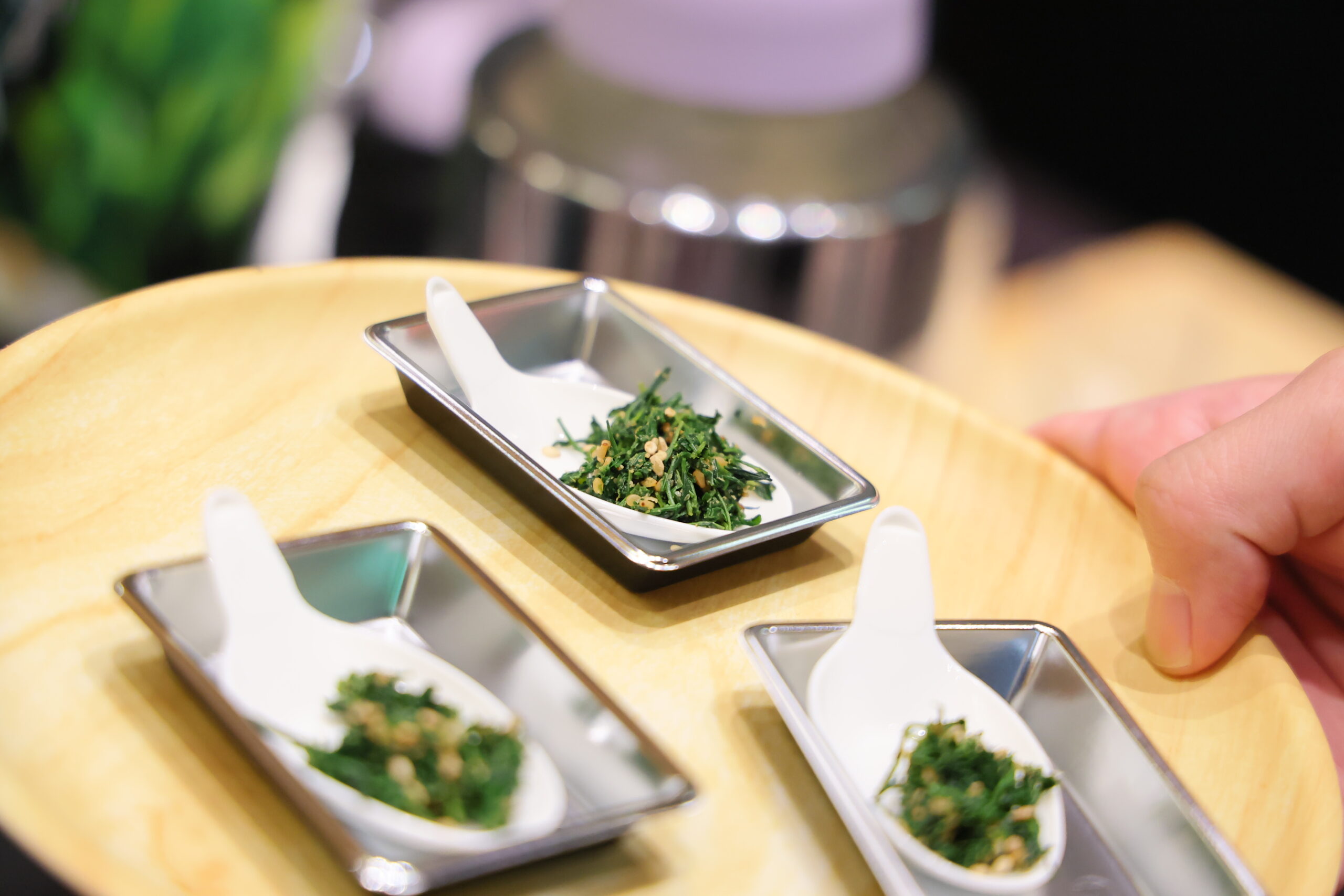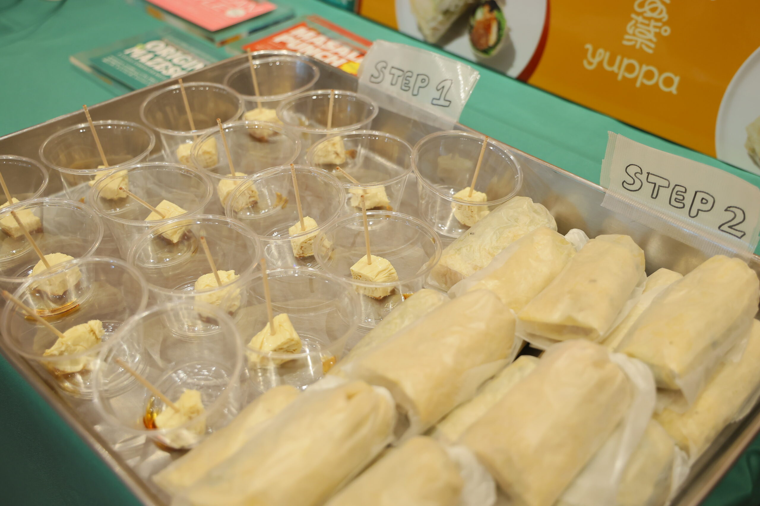 yuppa渡邊 尋思さんが出品したのは、茶そばや野菜を生湯葉でくるっと包んだ、高タンパクのワンハンドフード。なんと名料亭京都『菊乃井』のレシピ開発、湯葉は明治38年創業の『湯葉に』の提供で、味はお墨付き。渡邊さんはグリコを辞めて、中高校時代の同級生と、年内にも表参道の出店に挑戦する。
