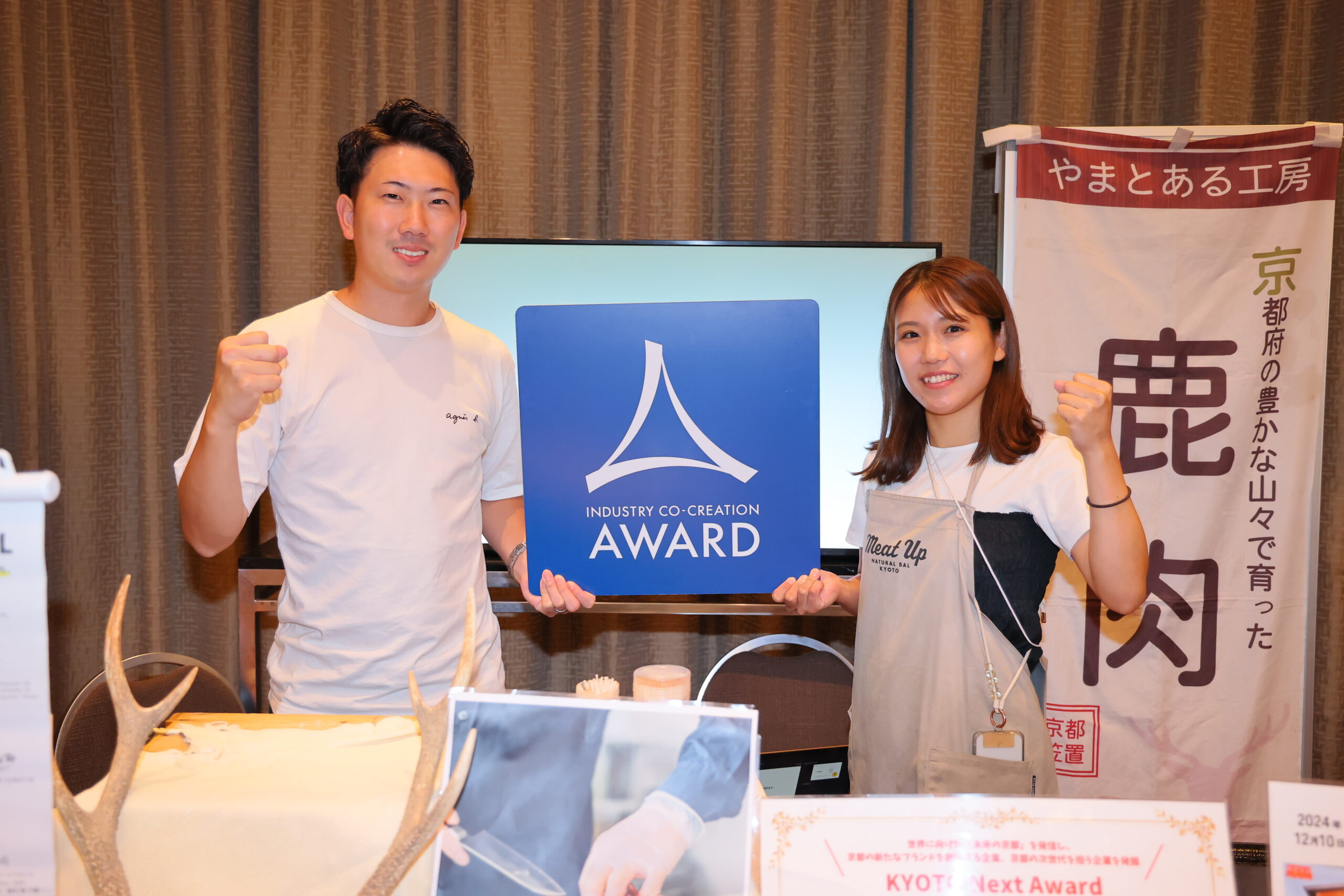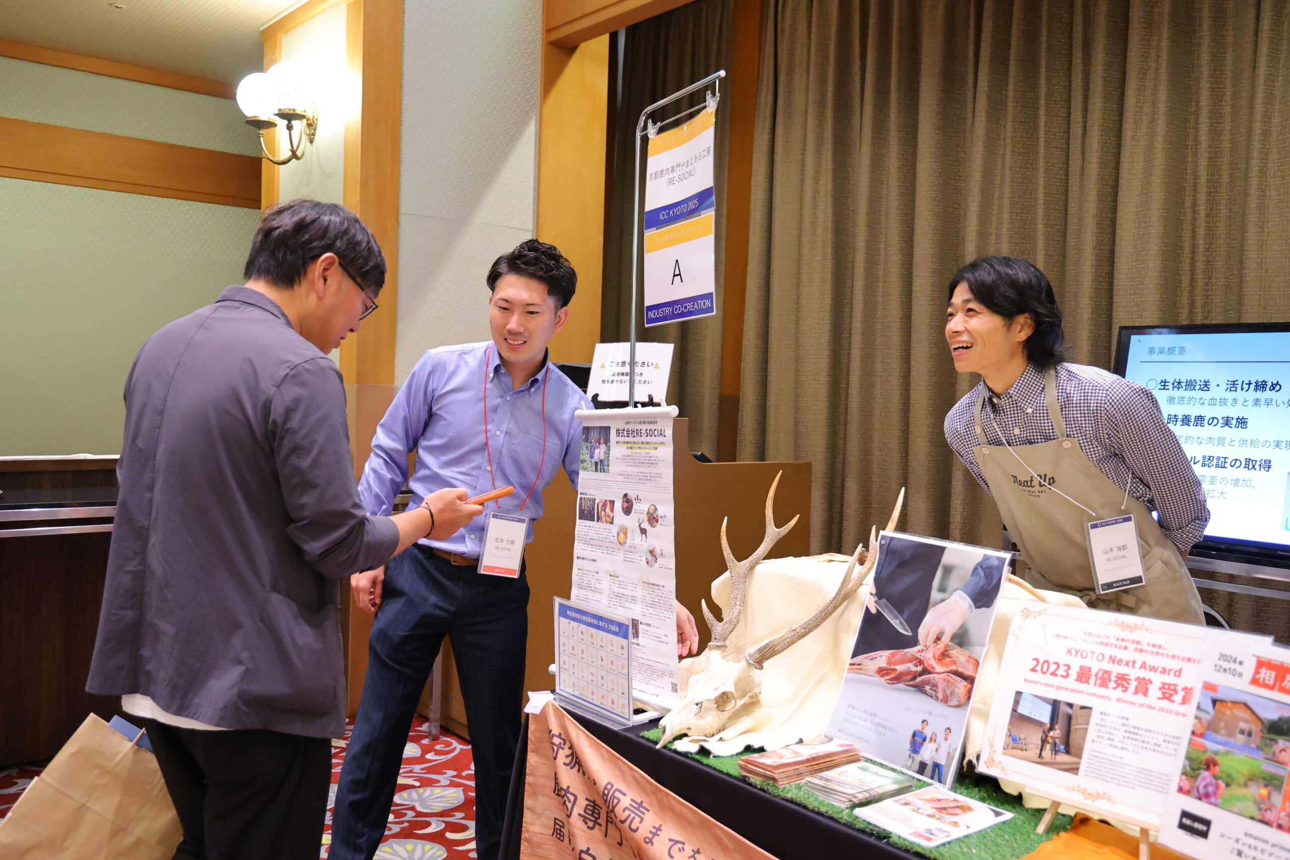 審査員のKurasuの大槻 洋三さんに、どのブースが良かったかと聞いたときに、名前が上がったRE-SOCIAL(京都鹿肉専門やまとある工房)の笠井 大輝さんは、大学で街づくりを研究していたときに知った『獣害被害』がきっかけで創業、日々ニュースを騒がせる野生動物との共生に食を通じて挑んでいる。