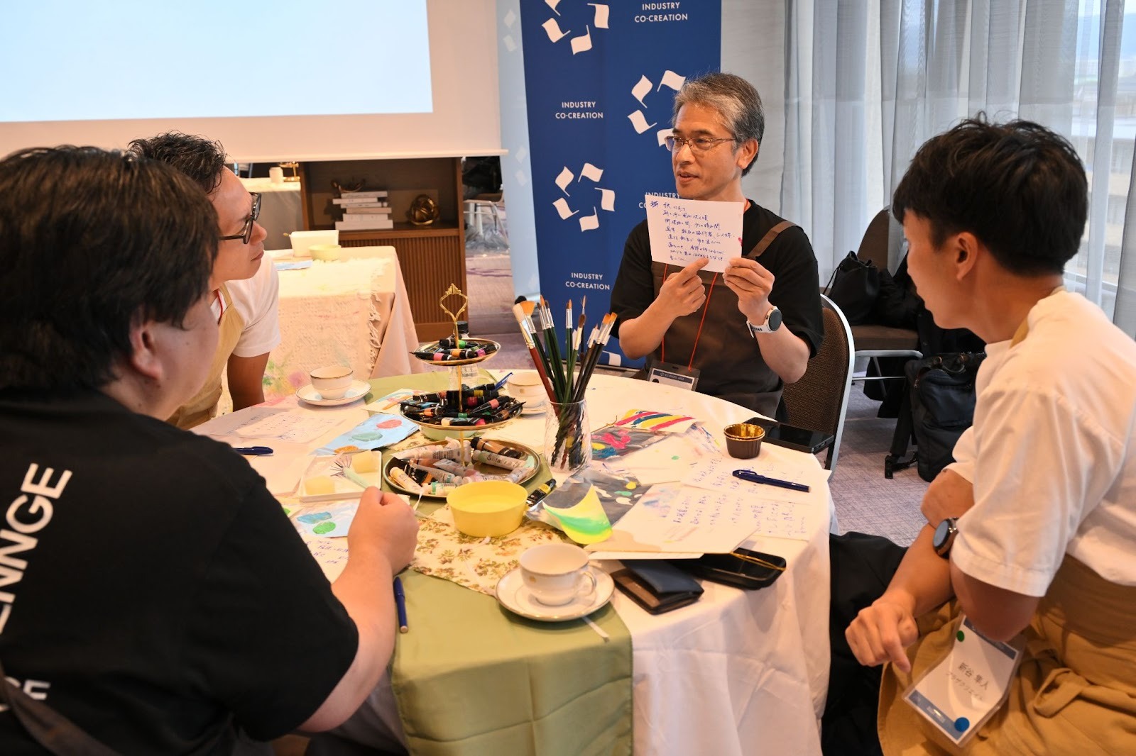 ワークショップの流れは、基本的にオフィスでの時と同様だが、ICCサミット最終日ということが特別な意味を加えていた。冒頭、参加者たちがグループとなる同じテーブルの人たちに向けて挨拶をした後に、白井さんはこう語り始めた。